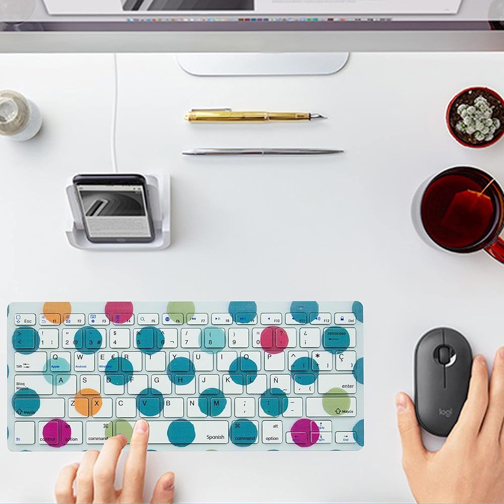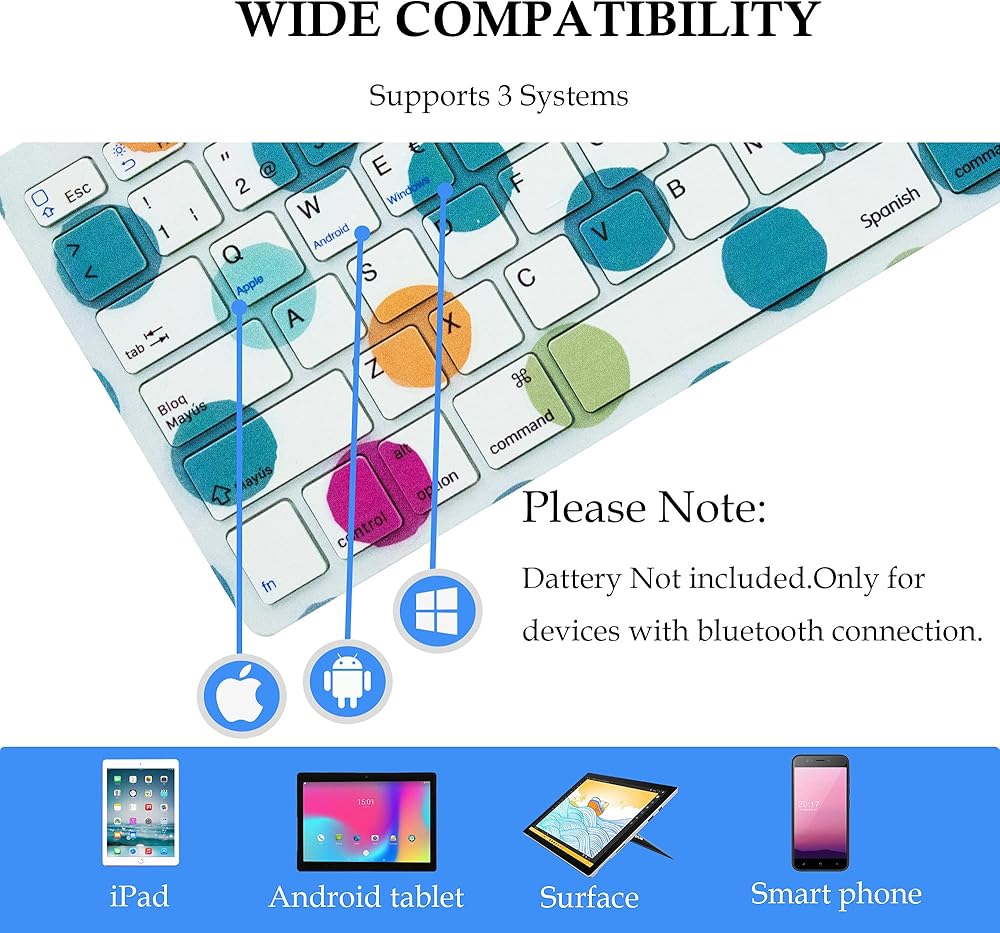 لوحة مفاتيح بلوتوث لاسلكية باللغة الإسبانية، اختصارات وظيفية رفيعة للغاية، لوحة مفاتيح بلوتوث لاسلكية لأجهزة iPad، iPad Pro، iPhone، iOS، Mac OS، أجهزة Android اللوحية، Windows (نمط نقطة البولكا)