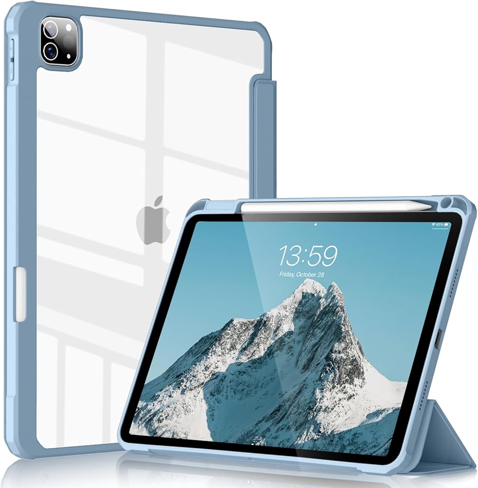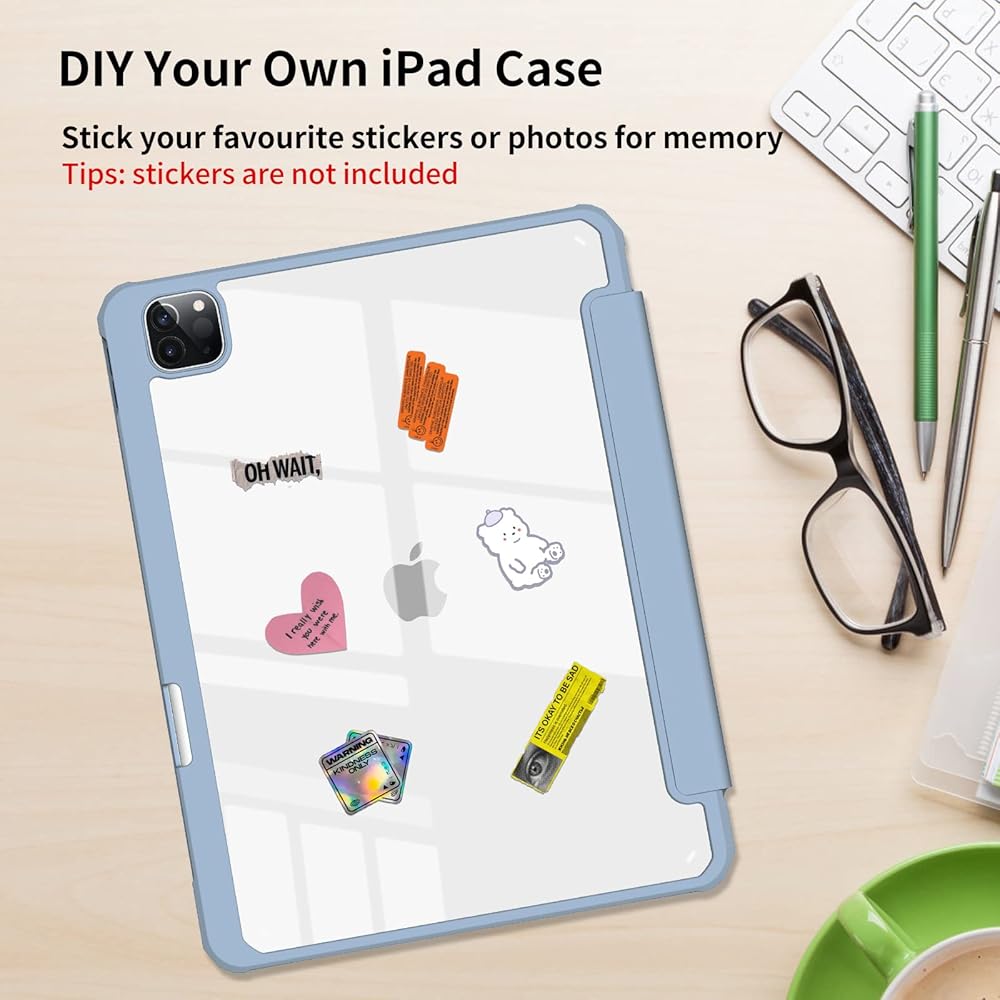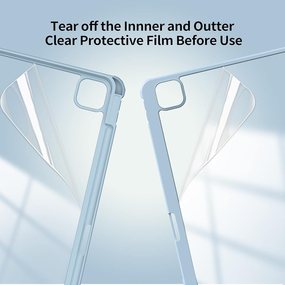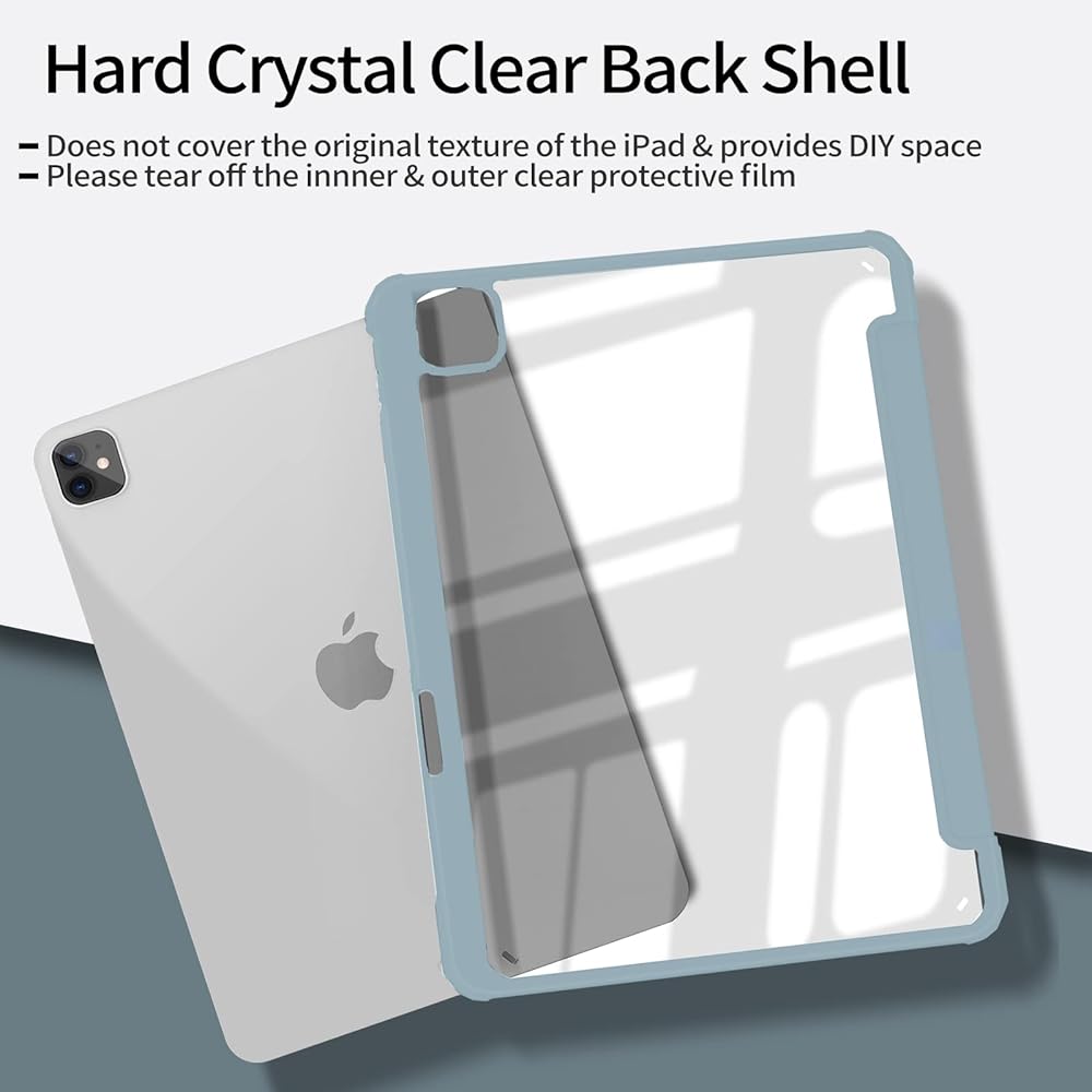 【غلاف خلفي شفاف من البولي كربونات بنفسك】يوفر الغطاء الخلفي الصلب الشفاف من البولي كربونات حماية كاملة للجسم لمنع الخدوش وزيادة حماية جهاز iPad الخاص بك من التلف والخدش. يمكنك لصق الملصقات عليه، واصنع حافظة الحماية الفريدة والمميزة الخاصة بك. الجزء الأمامي من حافظة iPad Air هذه ناعم كالحرير، مما يوفر ملمسًا مريحًا للبشرة.
