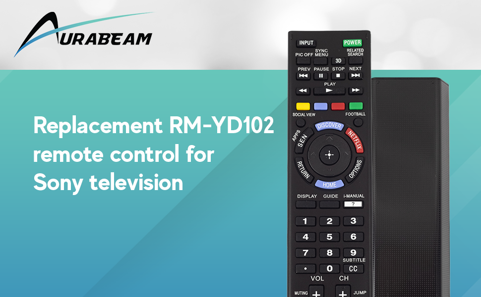 Aurabeam RM-YD102 جهاز التحكم عن بعد للتلفزيون البديل لتلفزيون سوني (RMYD102 / 149276611/1-492-766-11)