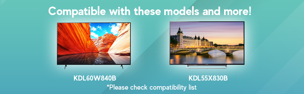 • متوافق مع الموديلات التالية: KDL50W790B، KDL-50W790B، KDL50W800B، KDL-50W800B، KDL55W790B، KDL-55W790B، KDL55W800B، KDL-55W800B، KDL55W950B، KDL-55W950B، KDL55X830B، 55X830B، KDL60W840B، KDL-60W840B، KDL60W850B، KDL -60W850B، KDL65W950B، KDL-65W950B، KDL65X830B، KDL-65X830B، KDL70W830B، KDL-70W830B، KDL70W840B