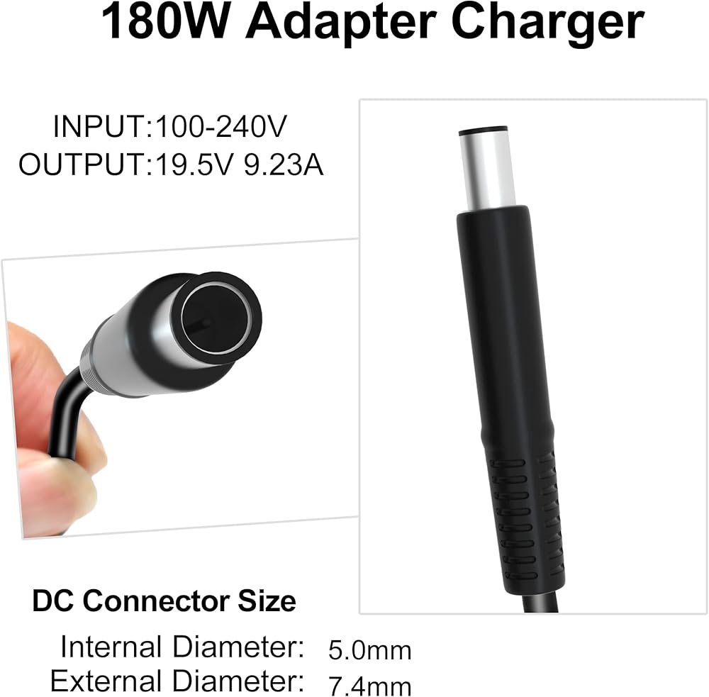 • Input: 100-240V 50-60Hz Output: 19.5V 9.23A 180W, Connector Size: 7.4mm*5.0mm(Refer the pictures)