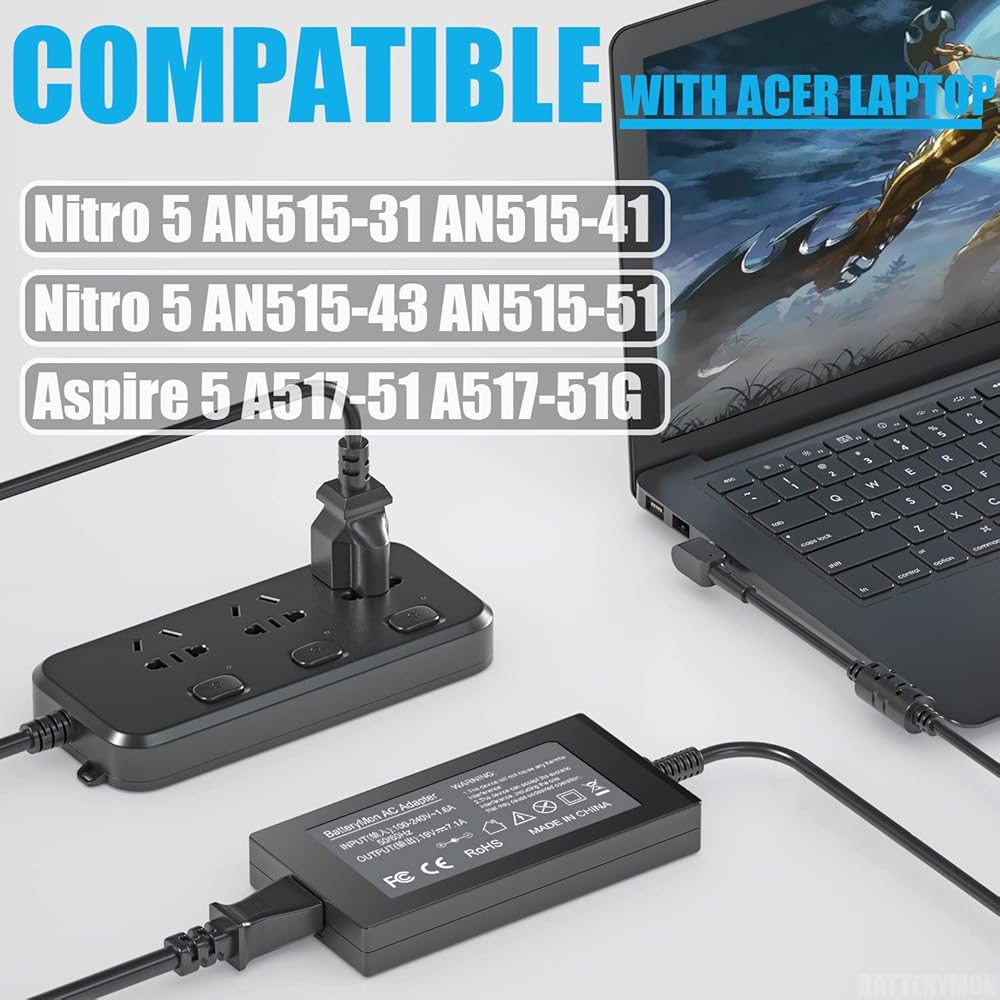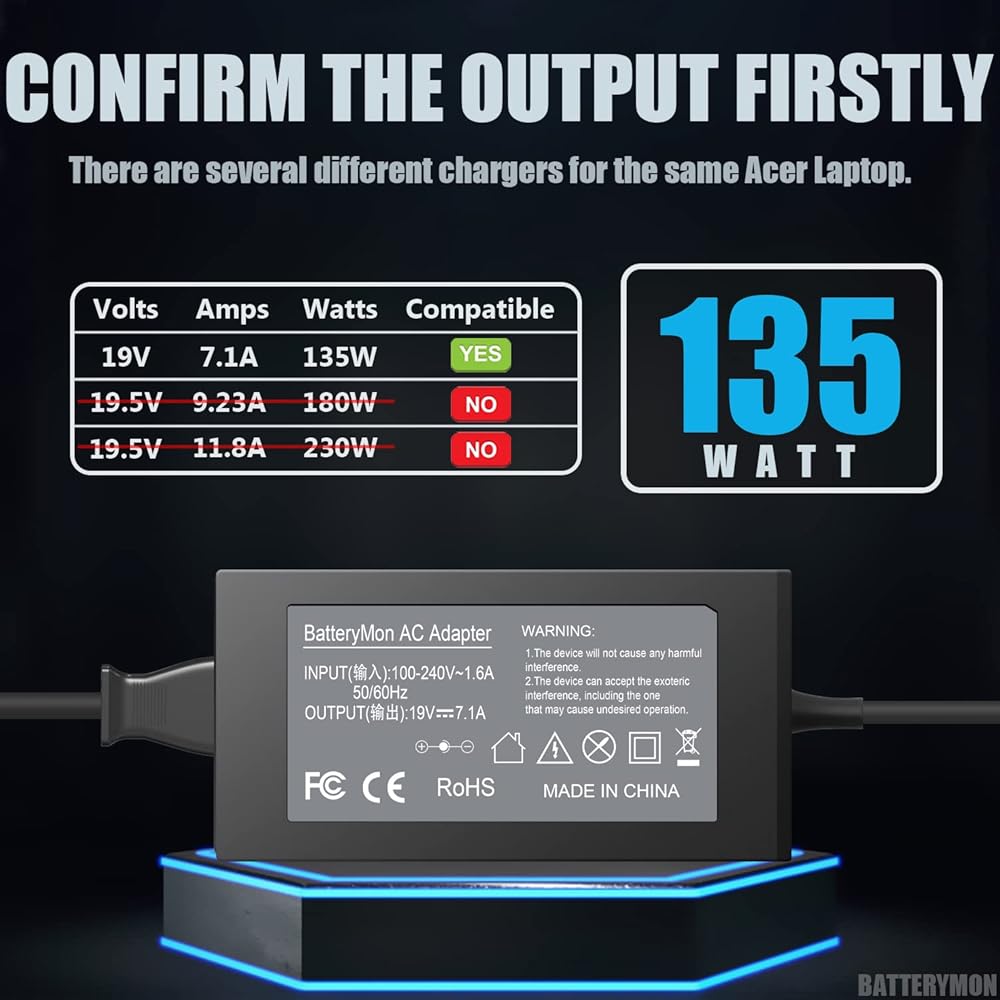 محول تيار متردد 135 واط مناسب لشاحن الكمبيوتر المحمول Acer Nitro 5، Acer Nitro 7 AN517-51 AN515-53 AN515-52 AN515-51 AN515-43 AN515-41 ADP-135KB T N18C3 N18C4 شاحن الكمبيوتر المحمول للألعاب