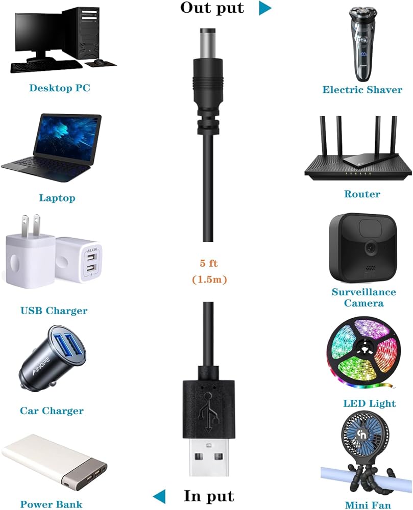 • تفاصيل المنتج: الحجم: USB إلى الموصل (5.5 × 2.1 مم)، الطول: 5 أقدام
