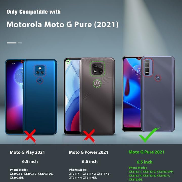 يناسب فقط Motorola Moto G Pure، 6.5 بوصة، موديل الهاتف: XT2163-1، XT2163-2، XT2163-2PP، XT2163-4، XT2163-6، XT2163-7، XT2163DL، نسخة غير مقفلة ذاكرة 32 جيجا بايت عميقة نيلي. الحزم: الحالات الأساسية للهواتف الذكية