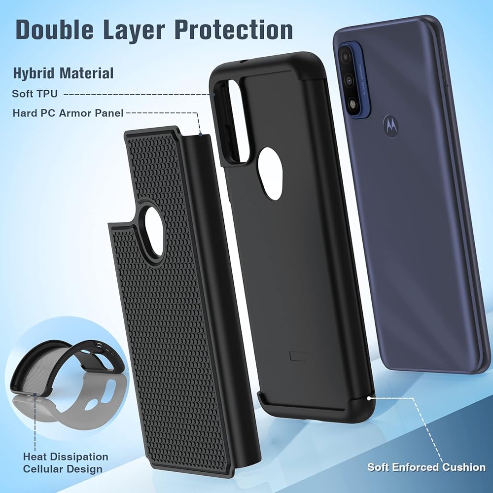 حافظة BNIUT لهاتف Motorola Moto G Pure: غطاء هاتف خلوي واقٍ بطبقة مزدوجة وشديد التحمل ومقاوم للصدمات مع ظهر مزخرف غير قابل للانزلاق - ممتص للصدمات للحماية العسكرية - 6.5 بوصة (أسود غير لامع)