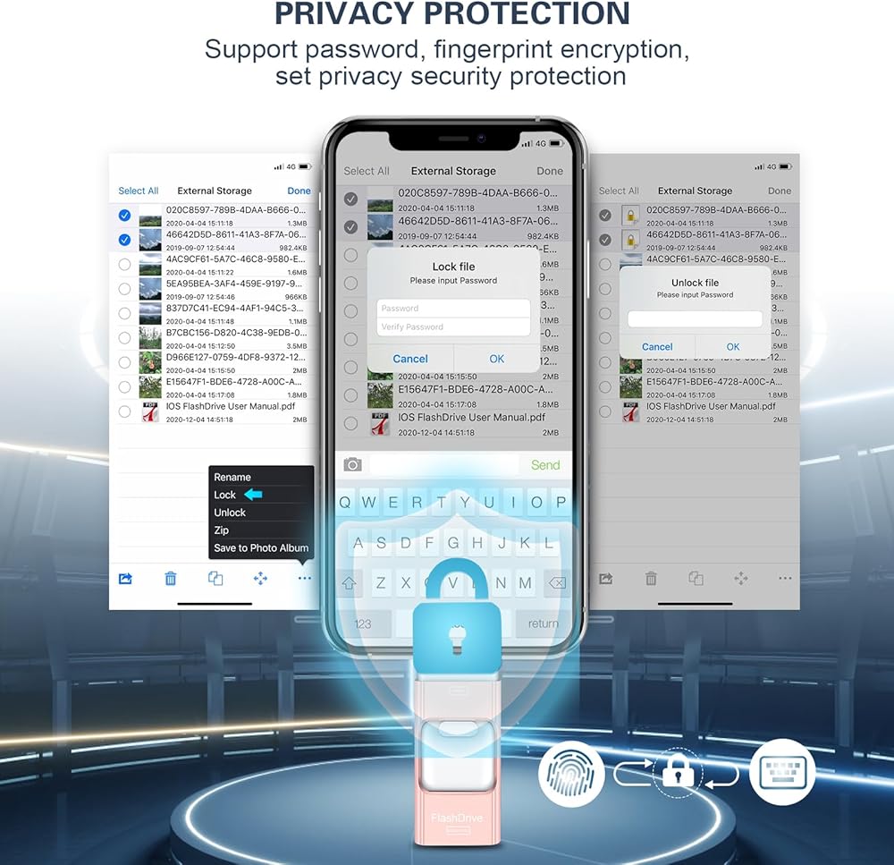 محرك أقراص ثابتة خارجي سعة 128 جيجابايت لأجهزة iPhone/iPad/Android/PC/الكمبيوتر المحمول، محرك أقراص فلاش للهاتف، يحتاج إلى تطبيق (وردي، O16)