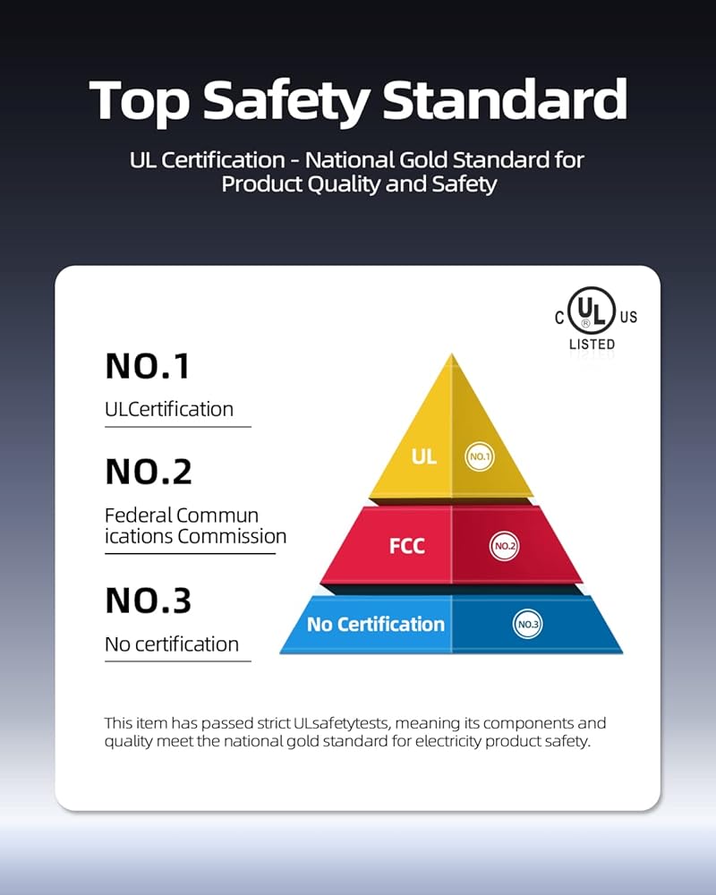 • Top Safety Standard: This item has passed strict UL safety tests, meaning its components and quality meet the national gold standard for electricity product safety.