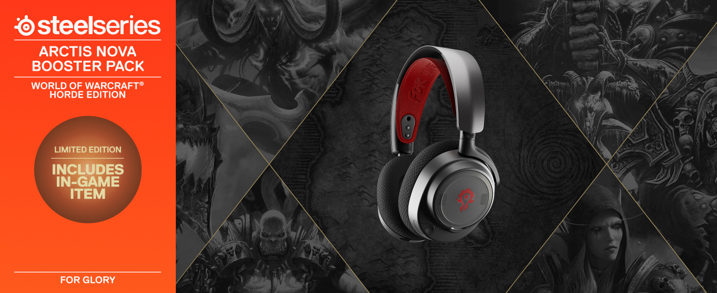 مجموعة SteelSeries Arctis Nova Booster Pack — إصدار World of Warcraft Horde — ملحق سماعة الألعاب — عصابة رأس من النايلون — يمكن التخصيص باستخدام لوحات مكبرات الصوت الفريدة — إصدار محدود لعنصر التجميع