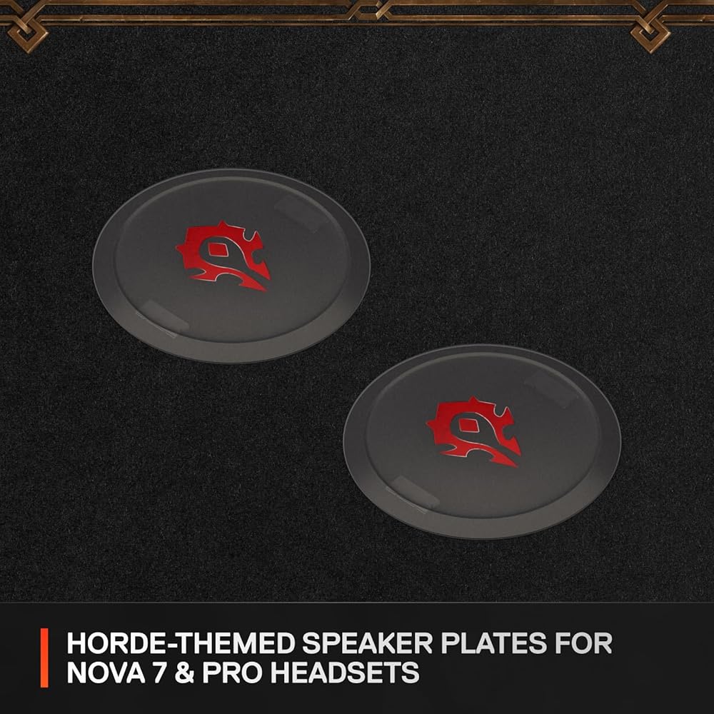 Declare your allegiance: For the Horde! Proclaim your loyalty with your Nova 7 or Nova Pro headset once and for all with Horde-themed speaker plates and a headband with the warcry of the Alliance. This is a set of two unique speaker plates that snap on to the earcups, as well as a custom nylon headband. Each purchase also comes with an in-game item. Headset not included.