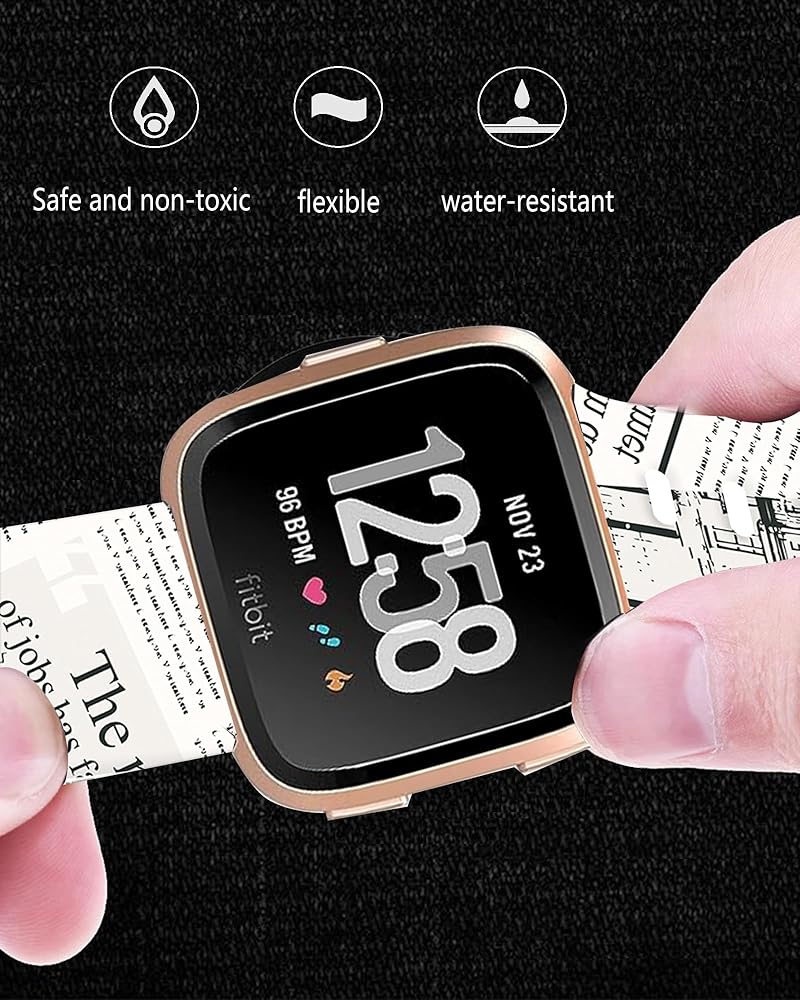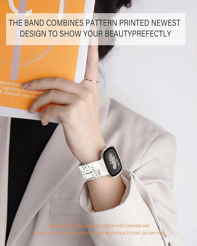 Exceptional Craftsmanship: Crafted from durable, skin-friendly silicone, our bands are designed to withstand daily wear. Utilizing advanced printing technology, we ensure vibrant patterns that resist fading and peeling over time. Fashionable and Unique: Elevate your style with our Sport Bands, compatible with Versa 3, Versa 4, Sense, and Sense 2. Featuring fashionable and cute patterns, they complement any outfit, helping you make a bold fashion statement wherever you go. Versatile Style Choices: Available in a spectrum of vibrant colors and patterns, our bands are perfect for any occasion. Whether it's a birthday, Christmas, Valentine's Day, or Mother's Day, they make a thoughtful and stylish gift for friends and family. Easy to Use: Designed for convenience, our bands feature precise connectors that effortlessly attach to your smartwatch, ensuring a secure fit without the need for tools. Say goodbye to the hassle of swapping bands while charging your device. Satisfaction Guaranteed: Purchase with confidence thanks to our commitment to quality. Enjoy a 1-year warranty for hassle-free refunds or replacements. Our dedicated customer service team is ready to assist you promptly with any issues – your satisfaction is our top priority.
