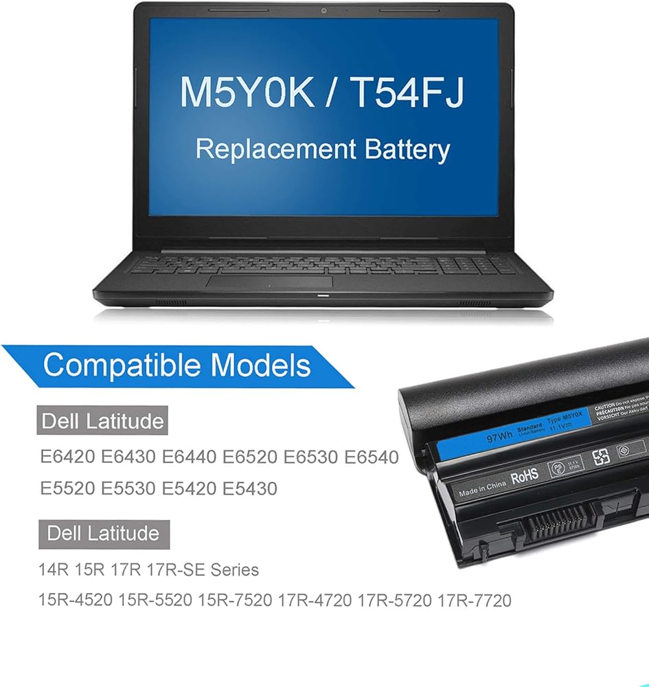 بطارية الكمبيوتر المحمول T54FJ M5Y0X لجهاز Dell Latitude E6420 E6430 E6440 E6520 E6530 E6540 E5520 E5530 E5420 E5430 تناسب NHXVW 8858X 312-1163 71R31 N3X1D HCJWT FRR0G [11.1V 7800mAh 97 ذوي الخوذات البيضاء 9خلية]