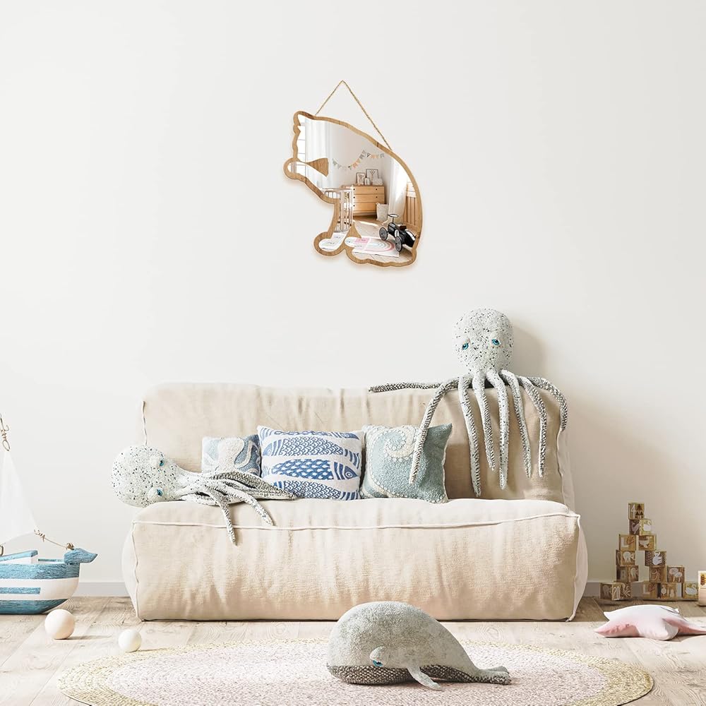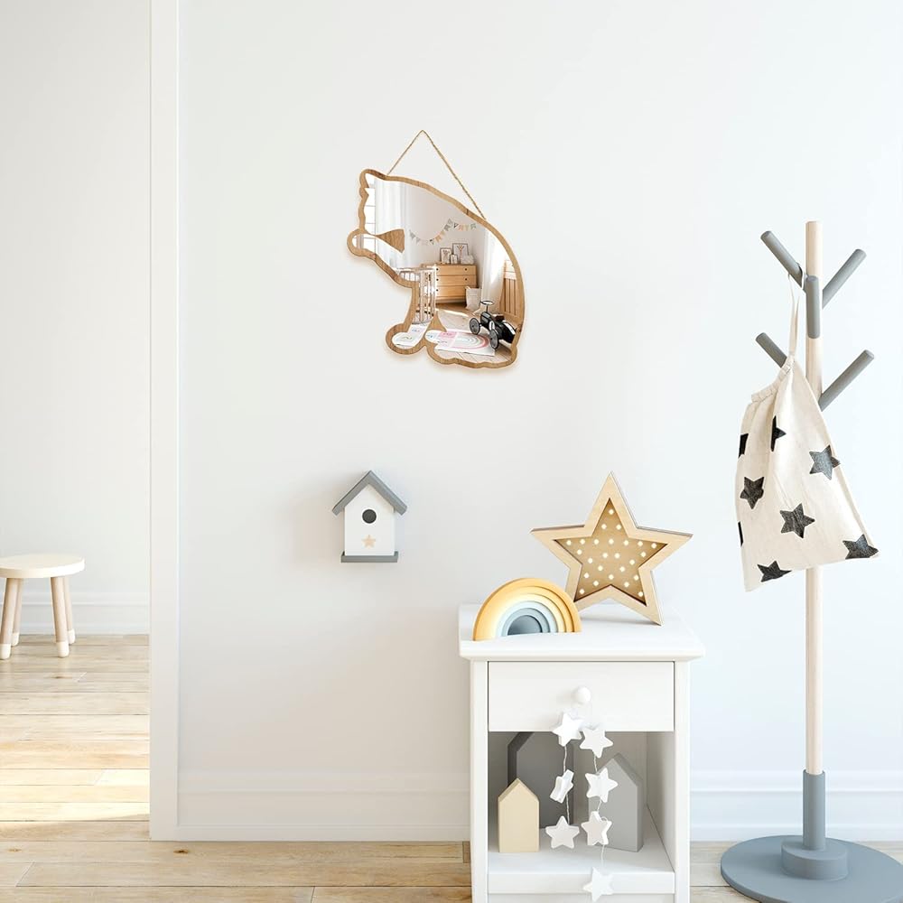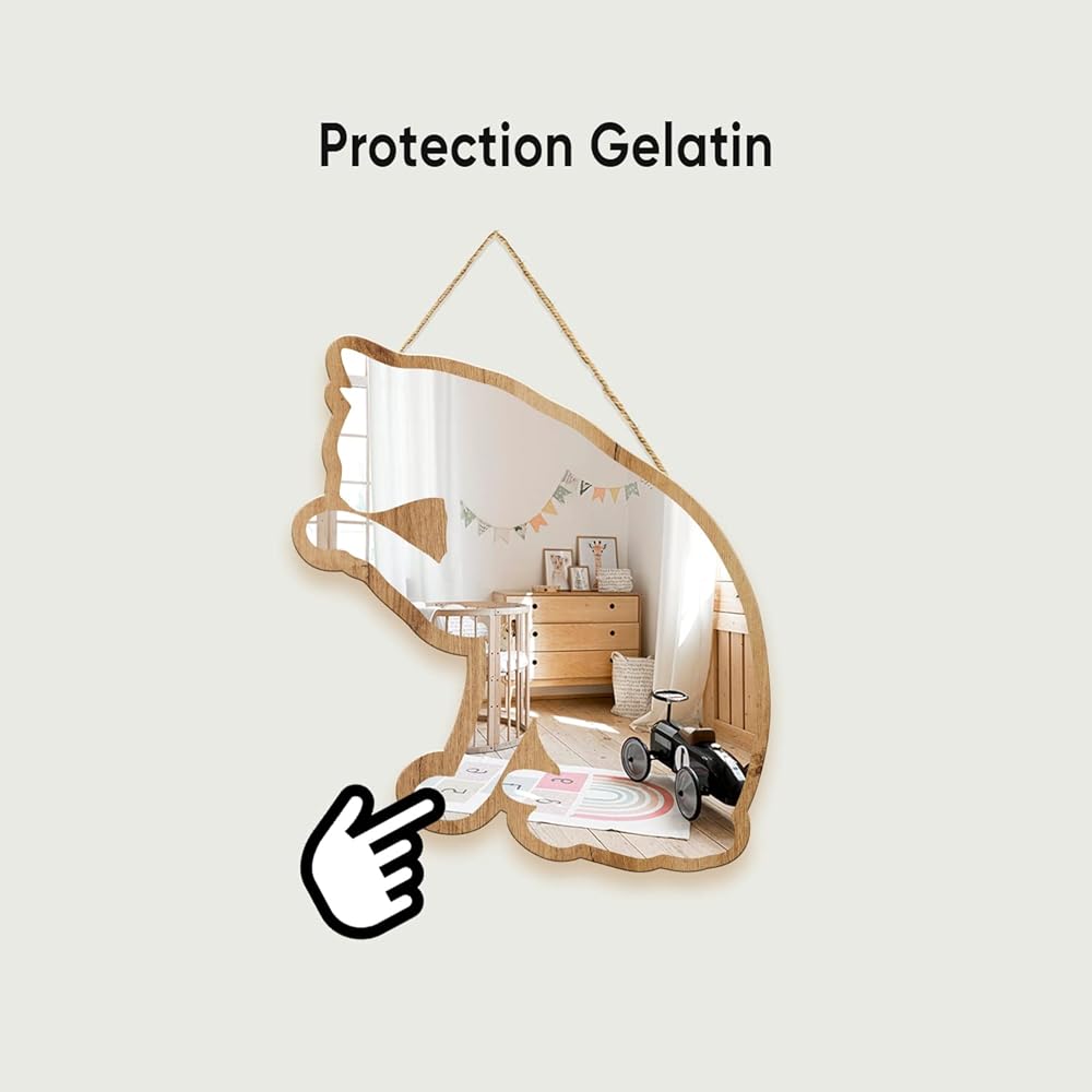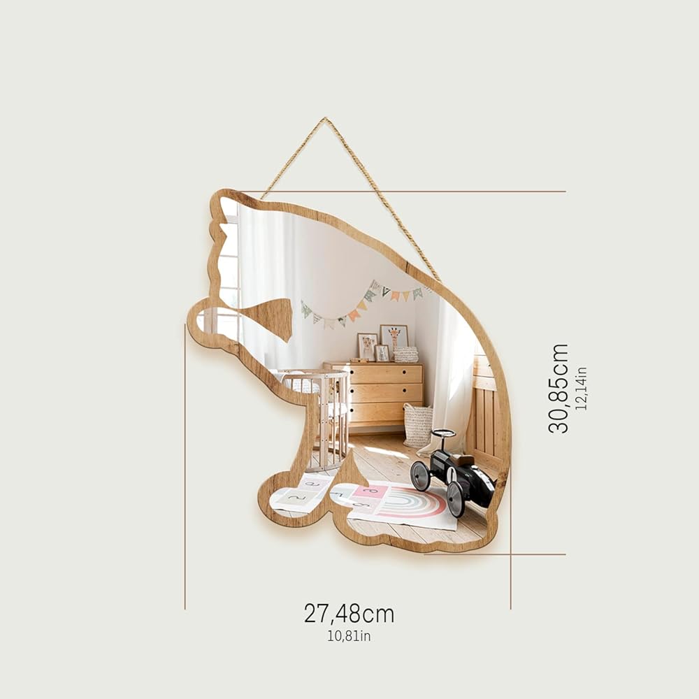 • مواد صديقة للبيئة وآمنة: مصنوعة من خشب الزان الطبيعي والأكريليك الصديق للبيئة، وغير سامة، وقوية ومتينة. وهي مغلفة بالبليكسي وغير قابلة للكسر. وضوح عالي: يتم الحصول على صورة مثالية وسلسة بفضل الشريط اللاصق الزجاجي ذو المرآة الفضية. سهل التركيب والاستخدام: إطار المنتج مصنوع من خشب الزان عالي الجودة وبه فتحات صغيرة. لتعليقه على الحائط، يمكنك اختيار إما خيط الكتان أو المسامير المرسلة مع المنتج، أو يمكنك استخدام الغراء الفائق. لمسة حرفية: هذه المرآة المزخرفة المصنوعة يدويًا هي اللمسة النهائية لغرفة الأطفال أو غرفة اللعب أو غرفة الأطفال لجعلها أكثر اتساعًا وأناقة. هدية جميلة: خيار هدية مثالي لعائلتك وأصدقائك.