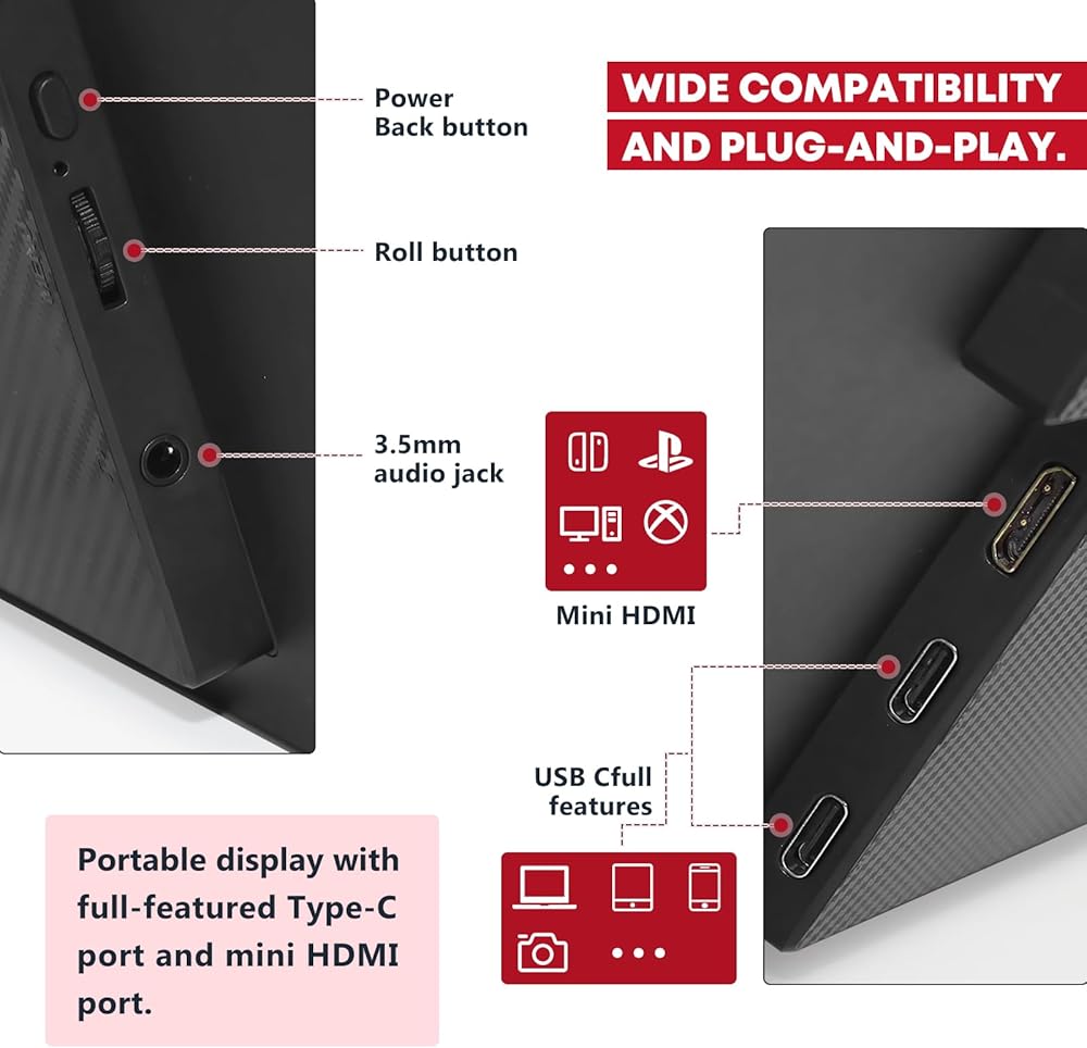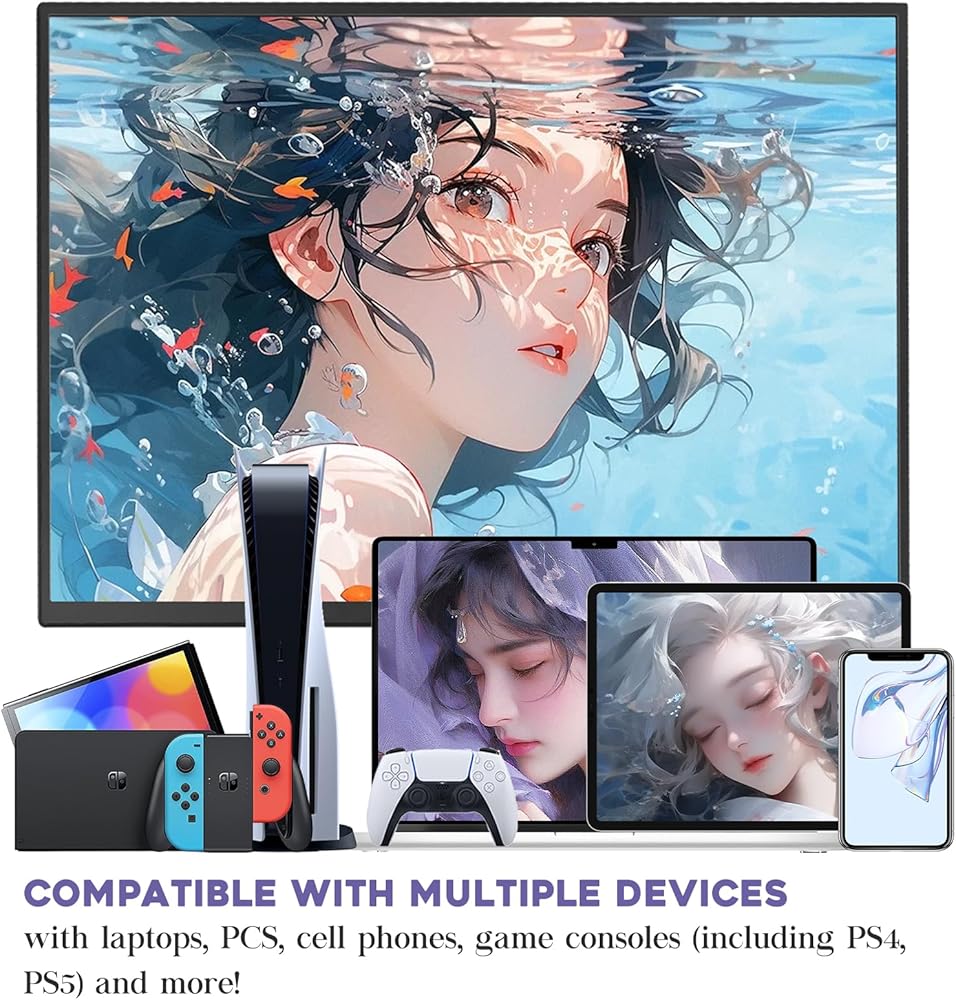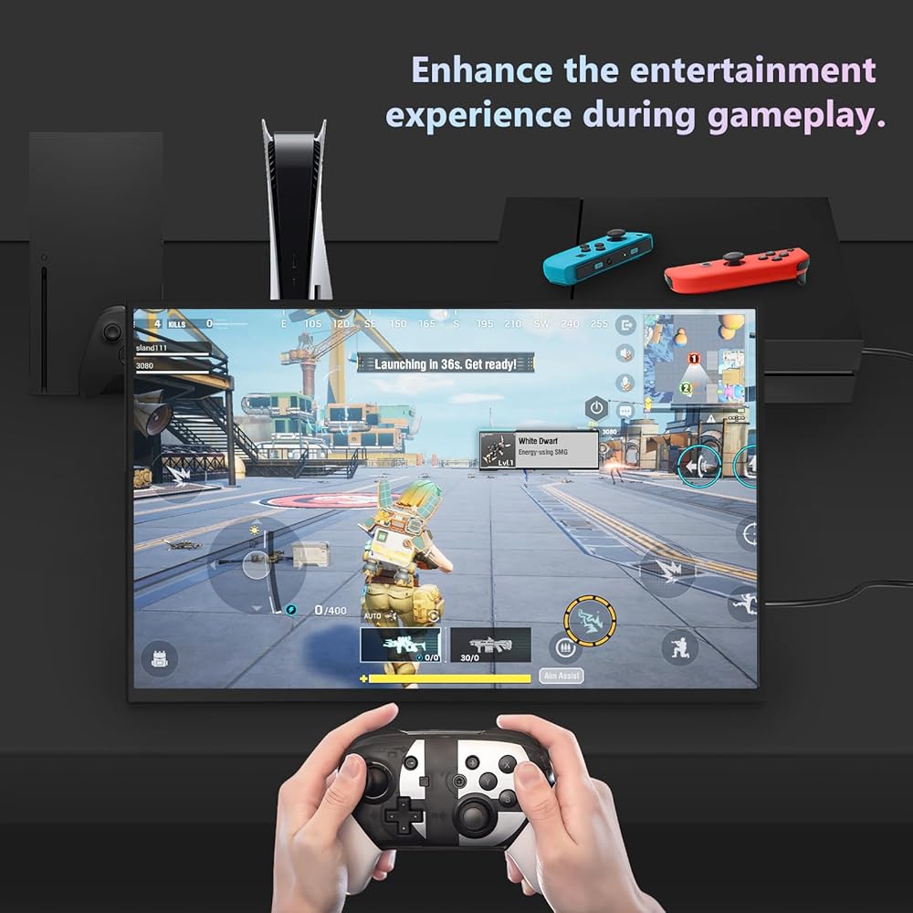[تدعم أجهزة متعددة] هذه الشاشة المحمولة الكبيرة متوافقة مع أجهزة متعددة مثل الكمبيوتر المحمول/الكمبيوتر الشخصي/الهاتف/Raspberry pi/Switch/PS4-5/Xbox وما إلى ذلك. يمكنها تمديد شاشة الكمبيوتر المحمول لإنجاز عملك بشكل أسرع، ويمكنها أن تعكس شاشة الهاتف للحصول على شاشة كبيرة، كما أنها تدعم العديد من وحدات التحكم في الألعاب، مما يجعلك متحمسًا لشاشة كبيرة صالحة للشرب أثناء ممارسة الألعاب