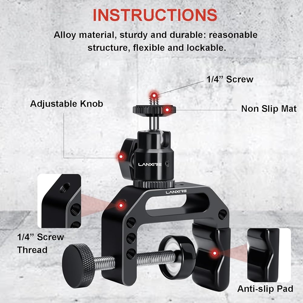 【استخدام متعدد الاستخدامات】 مجموعة المشبك c هذه مع حامل حذاء ساخن للكاميرا مقاس 1/4 بوصة مثالية لاحتياجاتك اليومية. يعمل مع مجموعة من الملحقات، بما في ذلك شاشات LCD، والحوامل الثلاثية، ومصابيح الفيديو LED، ومصابيح الفلاش، وكاميرات GoPro، وكاميرات الفيديو، والهواتف الذكية، والميكروفونات، ومصابيح الفلاش الحلقية، والمزيد مع خيط برغي 1/4 بوصة.