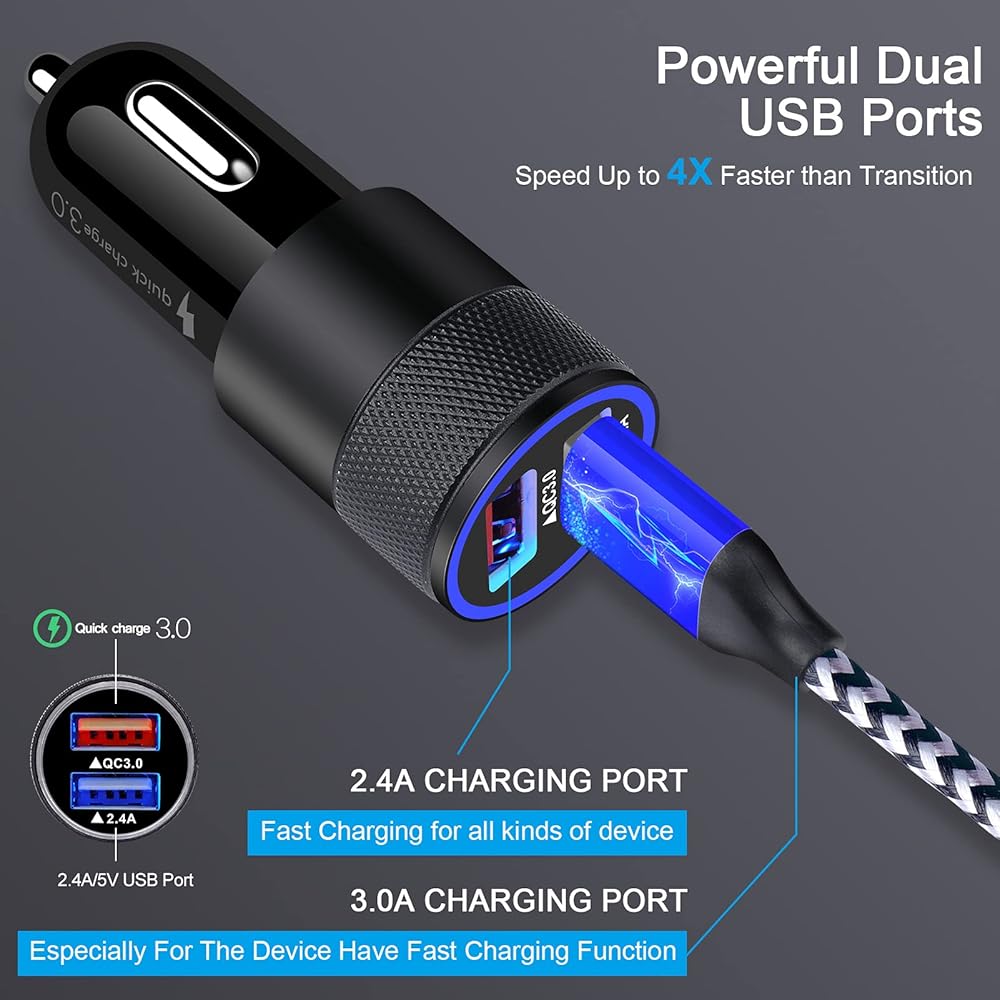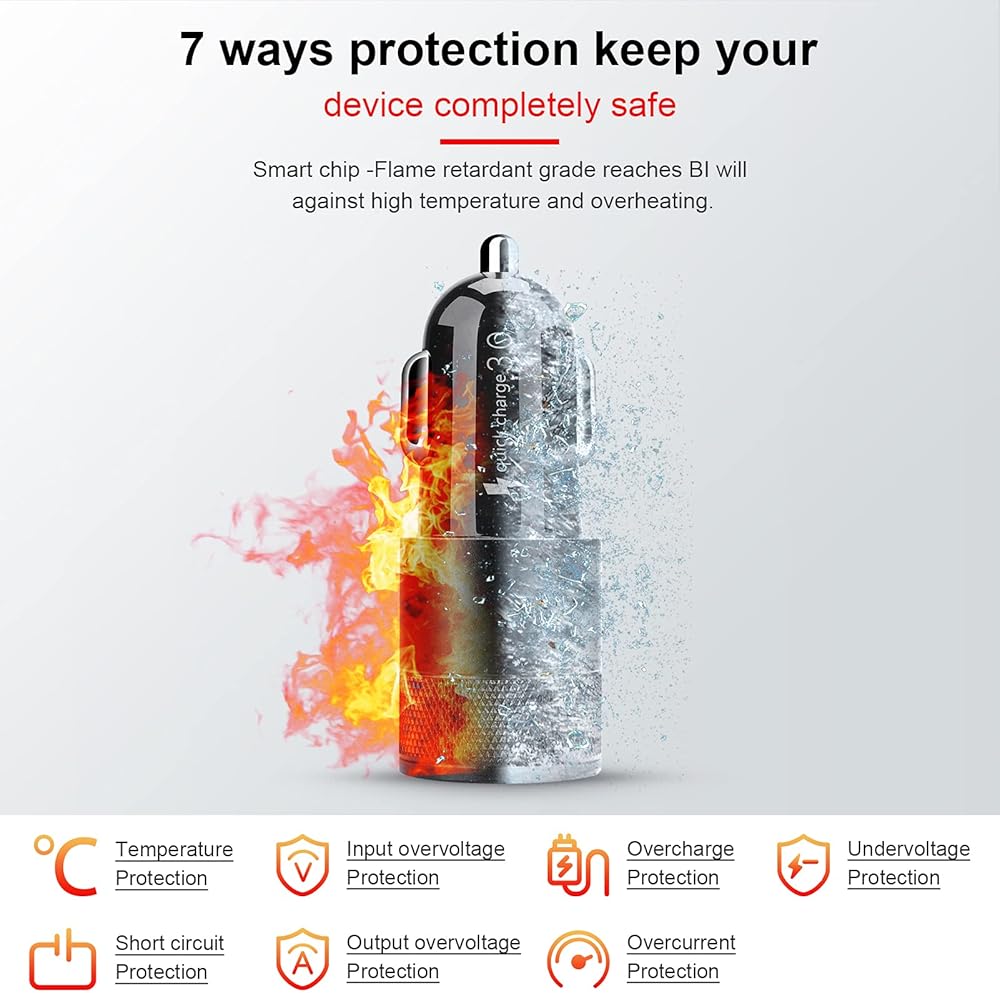 ①Dual Port Car Charger charges your 2 devices simultaneously at full speed.