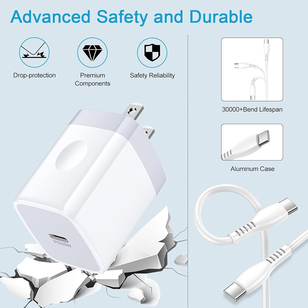 • 【What You Get】: 1Pcs 25W Super fast wall charger type c adapter fast charging block, 1Pcs 6FT usb c to usb c charging cable. If you have any questions, don't hesitate to contact us. our service team will reply you within 24hours.