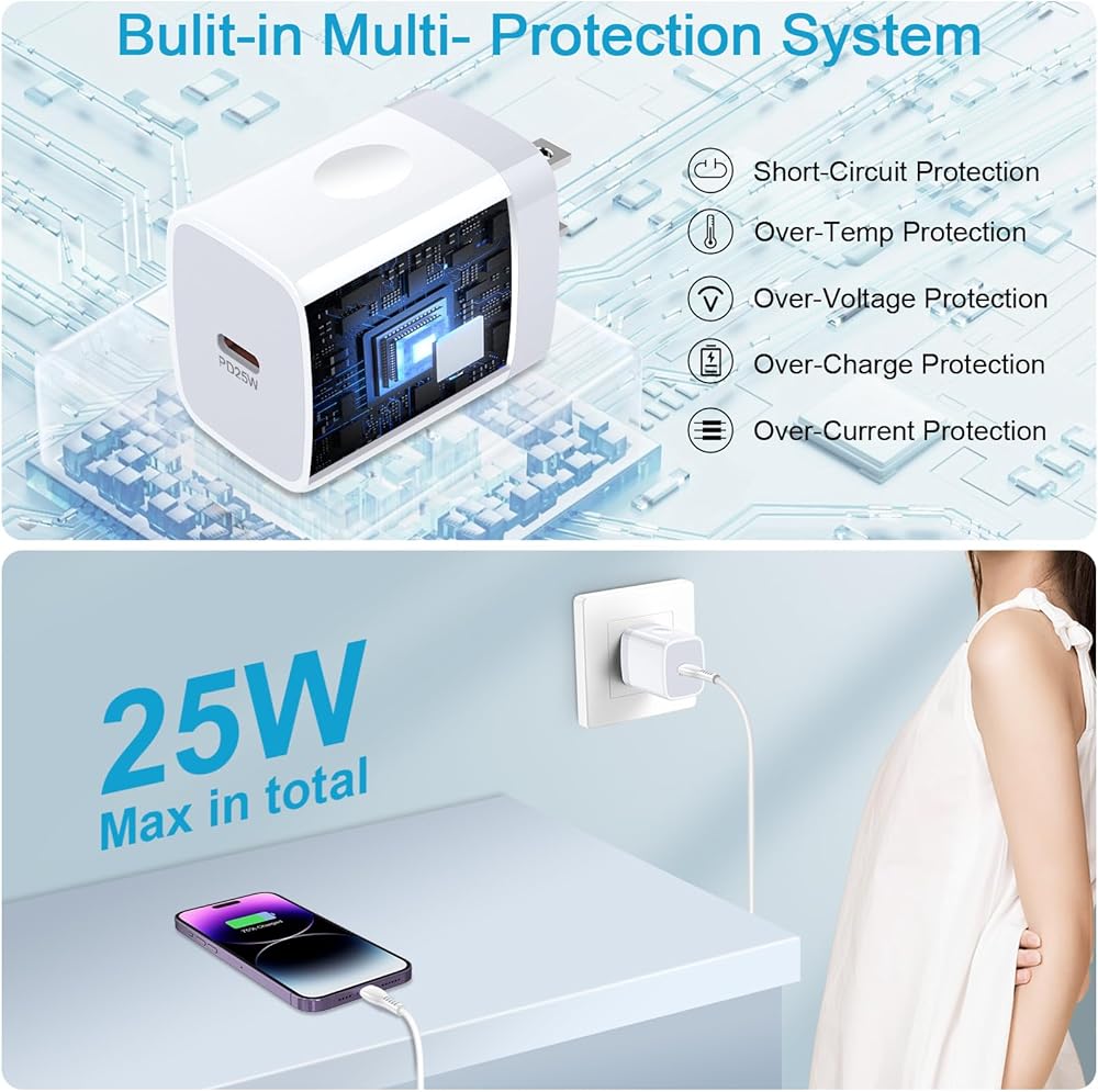 • 【Efficient Fast Charging and Travel Ready】: Type c wall adapter fast charging cube is equipped with an extra longer 6FT type c charger cord for your iPhone 16 up to 50% in just 30 minutes, saving over 1 hrs for you! Equipped with a smart chip,which can adjust the input power of the phone to prevent the phone from overcharging and overheating. Samsung a15 charging block incredibly compact size and ultra lightweight to ensure maximum portability so that wherever you want to go, you can always keep it with you while charging and syncing.