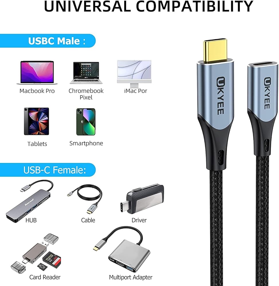 Wide Compatibility - The usbc cable extender perfect compatibility with all usb c Mobile Phone, Mag Safe Wireless Charger, oculus link cable, Switch, iPad Pro, iMac Pro, MacBook Mini,2021 MacBook Pro/ iPad Mini, M1 Macbook Mac mini, Chromebook Pixel, Nexus 5X 6P, Lumia 950 950XL, Dell XPS 13/ 15,iPhone 15, iPhone 15 pro, iPhone 15 pro max and more.