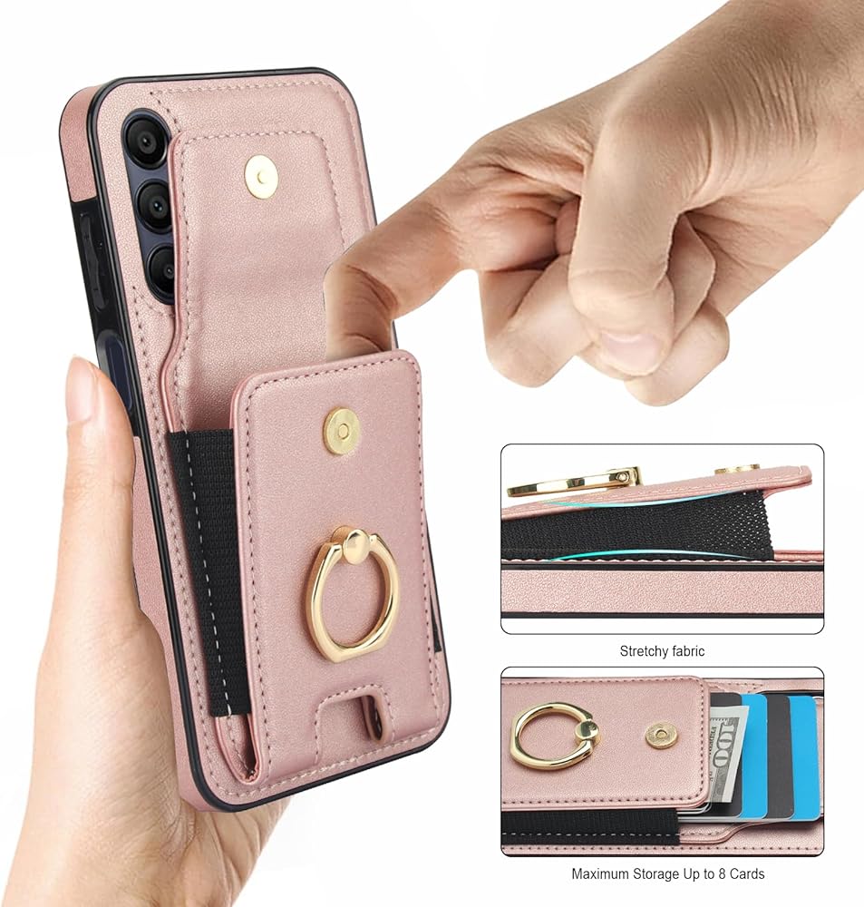 【Card Holder】: The card slots with elastic force, can securely hold 5-7 cards or little bit cash or coins without taking wallet outside.