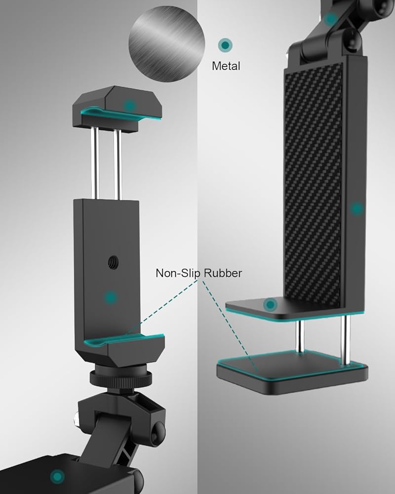 • 【دعامة معدنية خفيفة الوزن وقوية】دعامة الهاتف المحمول هذه مصنوعة من سبائك الألومنيوم خفيفة الوزن ولكنها متينة وتصميم القاعدة المضادة للانزلاق يجعل مشبك الهاتف المحمول أكثر استقرارًا ولا داعي للقلق بشأن السقوط. تعمل الوسادة الواقية المطاطية على حماية الهاتف المحمول من التلف وهي أقوى من الأقواس الأخرى.