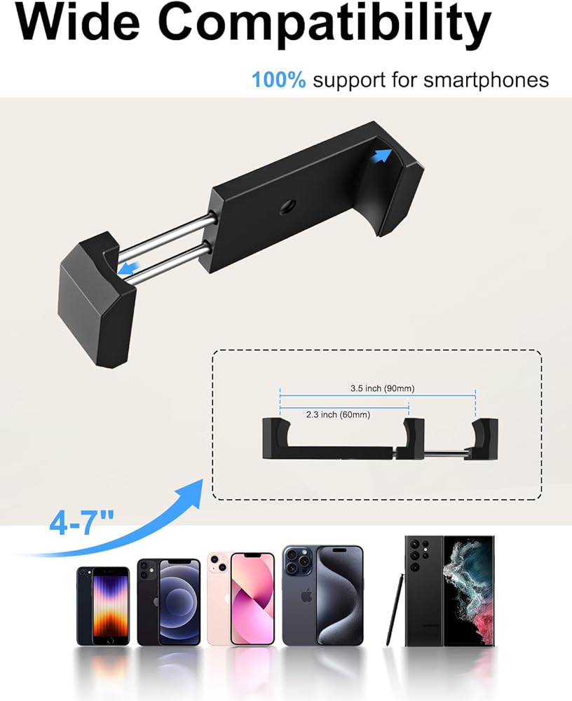• 【دعم طائرات خاص بالهاتف المحمول】تم تصميم الحامل المحمول المصنوع من سبائك الألومنيوم خصيصًا للهواتف الذكية. تصميم قابل للتمدد أحادي الاتجاه (النطاق الأقصى: 3.54 بوصة/9 سم) مناسب لجميع الهواتف المحمولة الموجودة في السوق تقريبًا. مثل: iPhone15/15 pro/ 14/14 ميني / 14 برو / 14 برو ماكس / ايفون 13/13 ميني / 13 برو / 13 برو ماكس / 12 برو ماكس / 12 برو / 12 / ايفون 11 / اكس اس ماكس / اكس ار / اكس اس / اكس / 8 بلس / 8/7 بلس / 7/ 6.