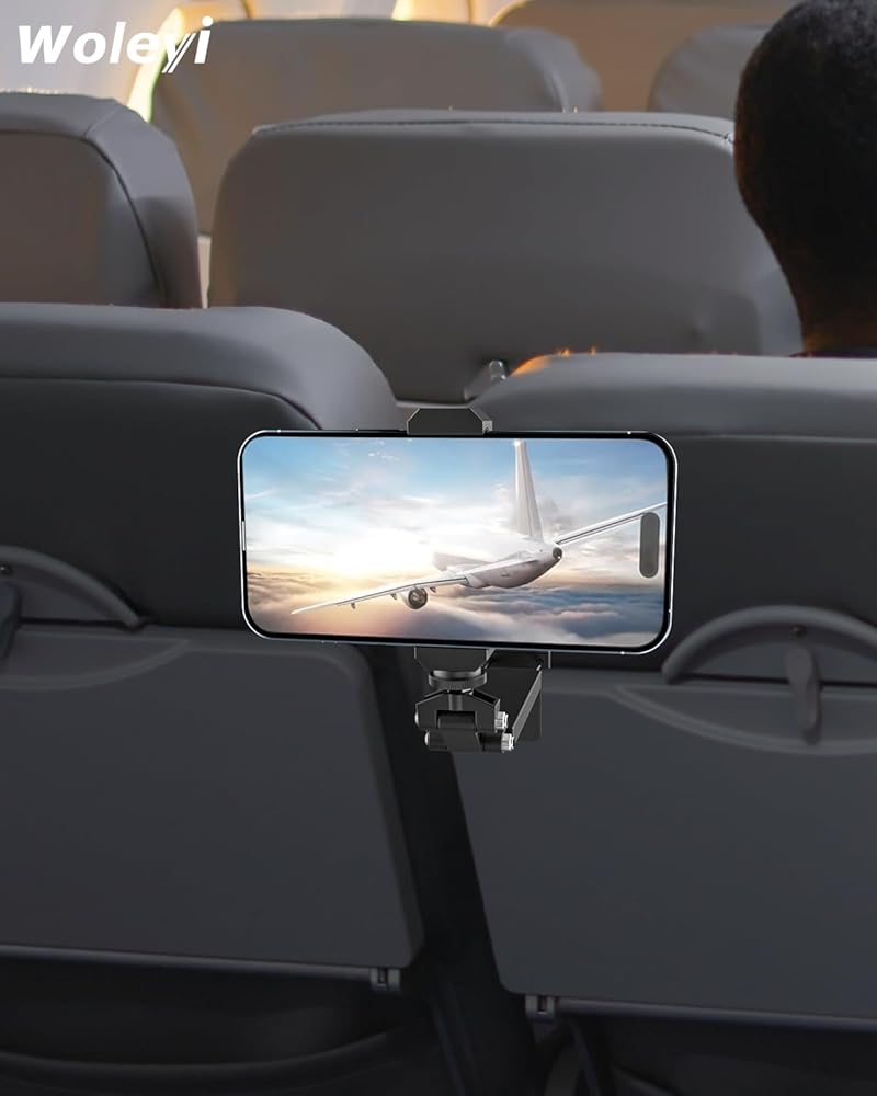 حامل هاتف الطائرة من woleyi للسفر - [مشبك قاعدة معدني أوسع] حامل للهاتف الخلوي على شكل طائرة أساسيات السفر للمكتب، ملحق أساسي للطيران، لهاتف iPhone 15 14 13 12 Pro Max Plus جميع الهواتف الذكية
