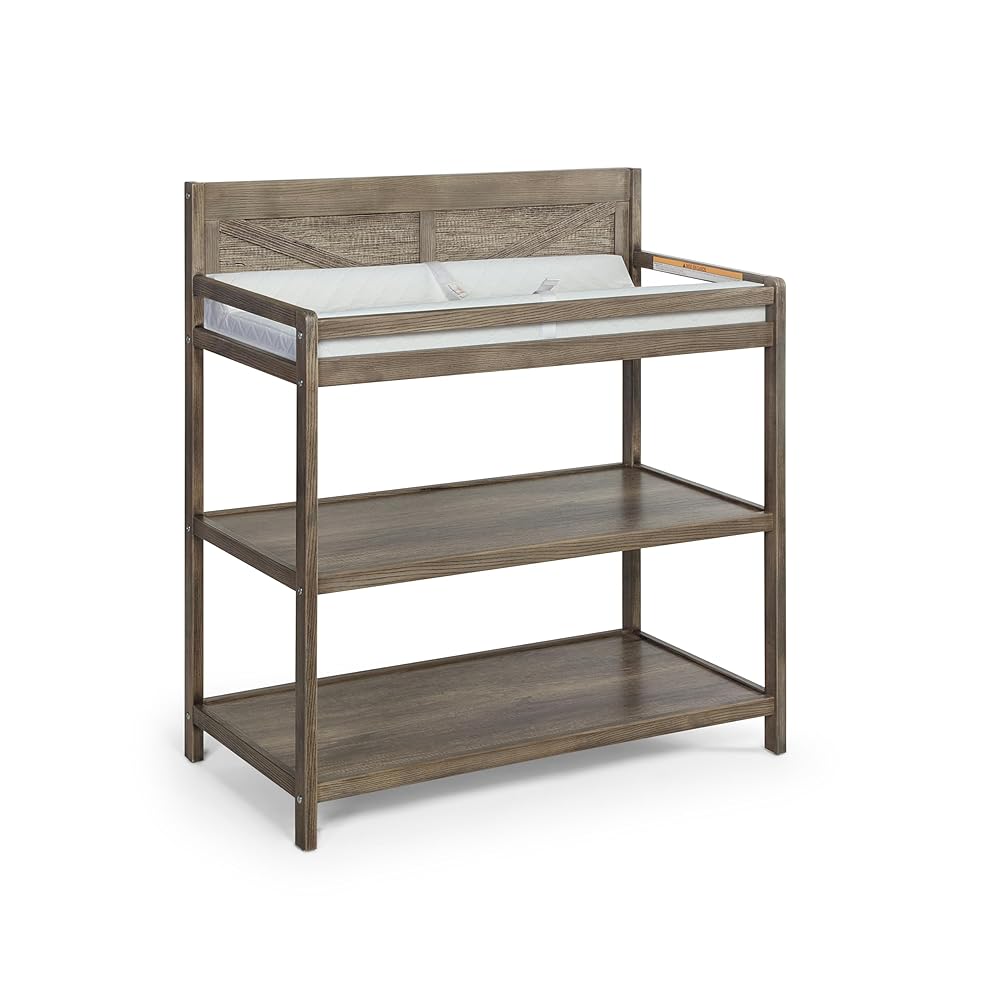The Suite Bebe Barnside Changing Table in Washed Gray finish perfectly coordinates with the Barnside Crib. The safest place to change your baby with easy access of two sturdy shelves for your baby's necessities. Later this great piece can easily transition into a book case, or toy shelf for your toddler. With Suite Bebe's solid construction and timeless design you can't go wrong.