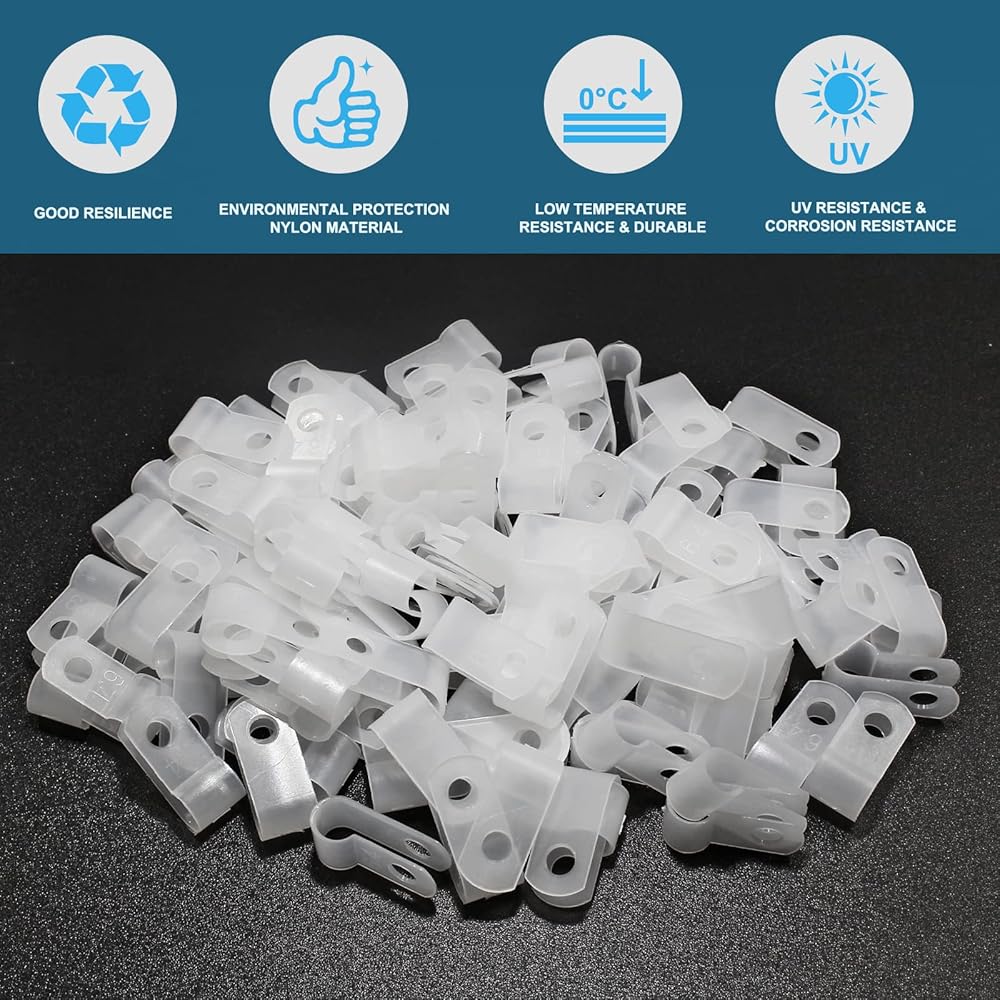 High Quality Material: White wire clamps are made of environmental protection nylon material, good resilience, UV resistance, corrosion resistance, low temperature resistance and durable, not easy to aging, is a good helper for your wire management.