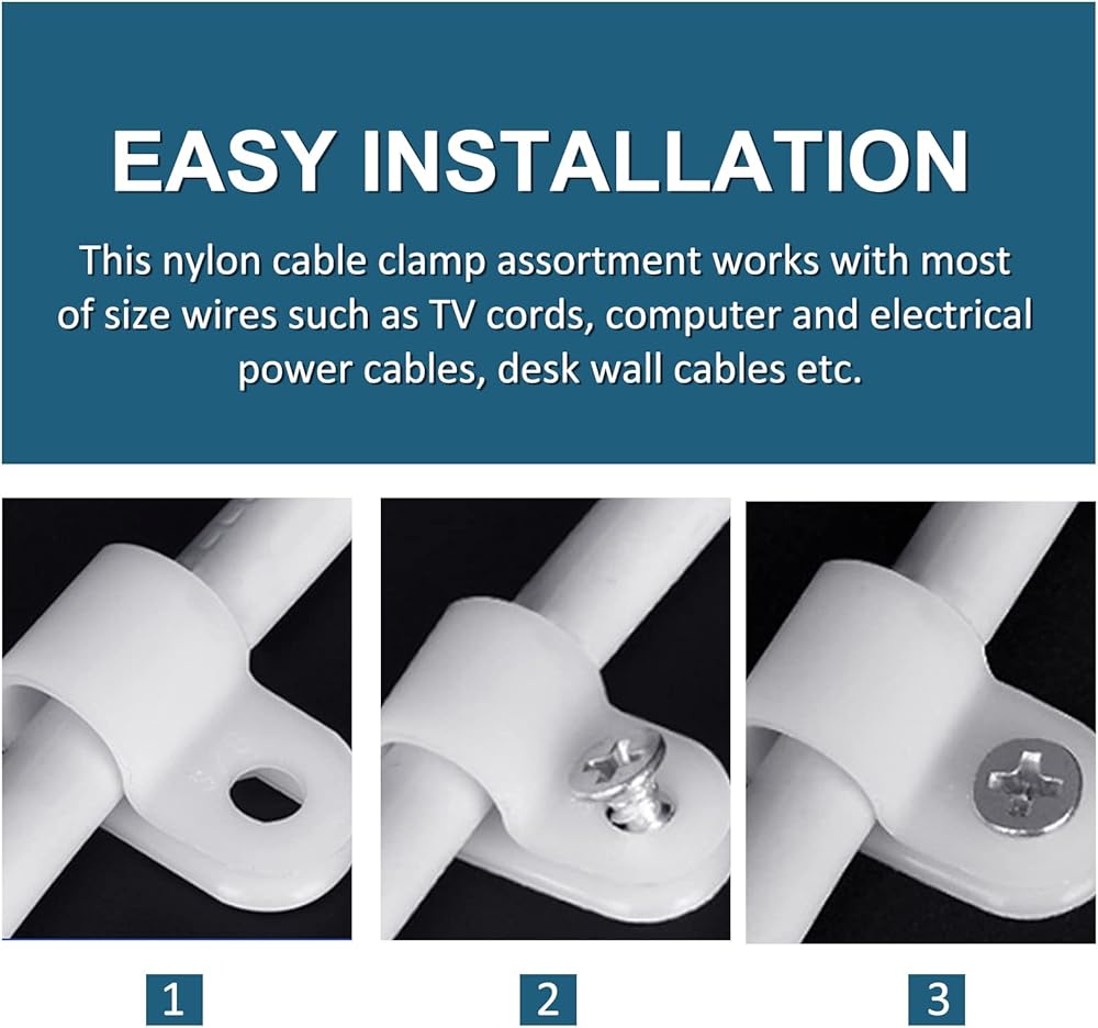 Widely Used: Nylon cable clamps can be used for all kinds of cable management, can be used to fix all kinds of power cords, computer cables, lighting cords, etc., so that your home away from the messy trouble because of the wire.