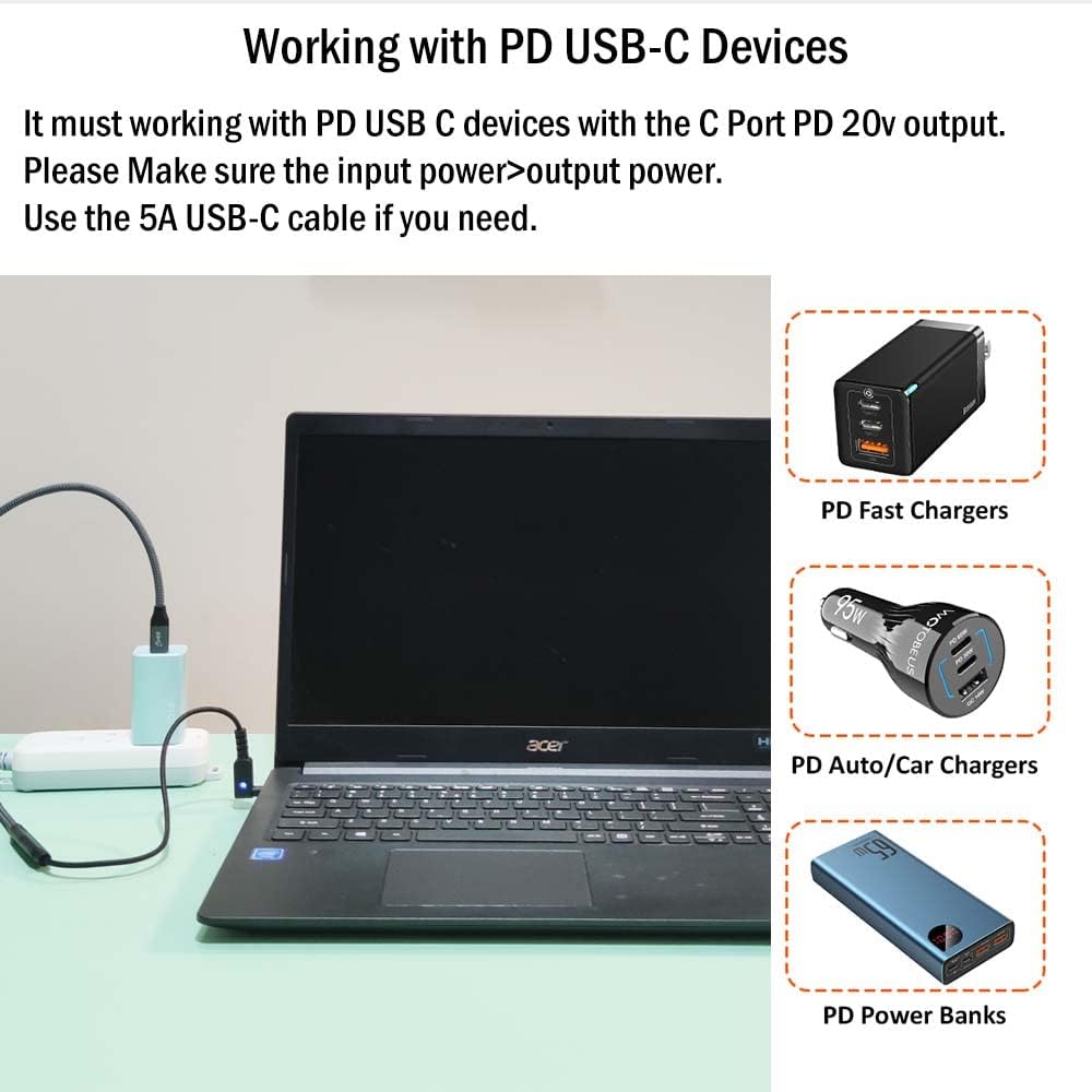 Input: PD USB C 20v 2.25a 45w / 3.25a 65w / 5a 100w (Make sure the input power > output power)