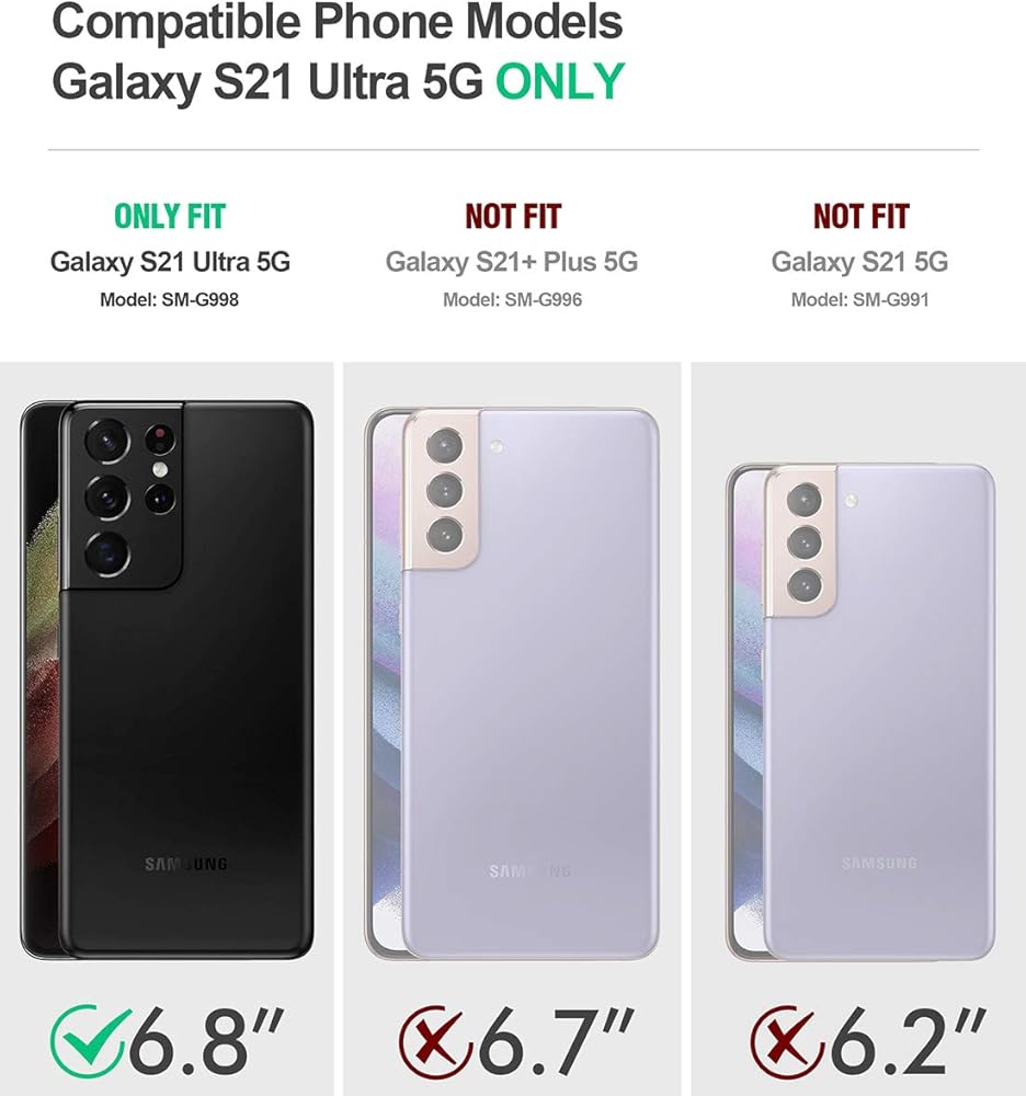 حافظة سامسونج جالاكسي S21 ULTRA 5G 6.8 بوصة تم اختبارها من الدرجة العسكرية - تحمي هاتف سامسونج جالاكسي S21 Ultra 5G 6.8 بوصة من جميع الزوايا. مقاوم للصدمات/السقوط/الصدمات/الخدش.
