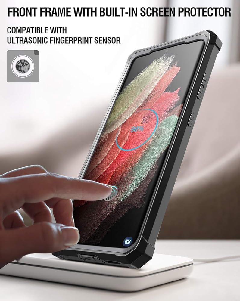 متوافق مع الشحن اللاسلكي - لا يؤثر سمك هذا الجراب على قدرة الشحن اللاسلكي لهاتف Samsung Galaxy S21 Ultra 5G.