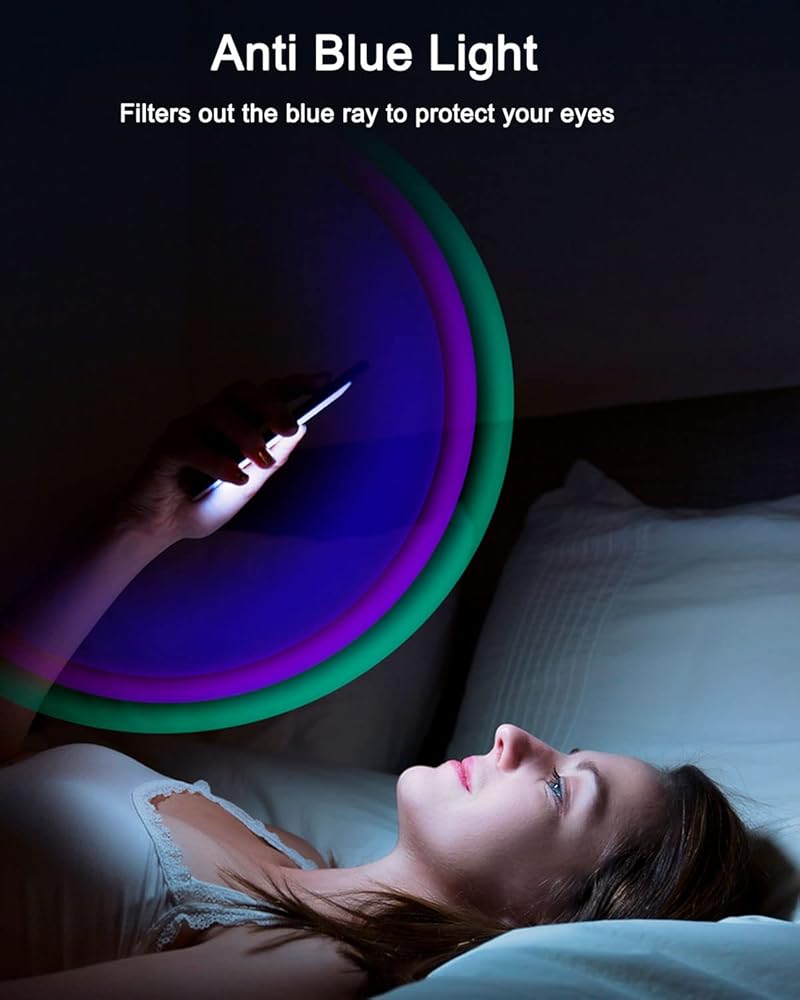 Blue Light Blocking: Featuring blue light filtering technology to reduce eyes fatigue, dry-eyed and the risk of eyes disease. Removing blue light from mobile phone screens to protect eyes and anti-dizziness.