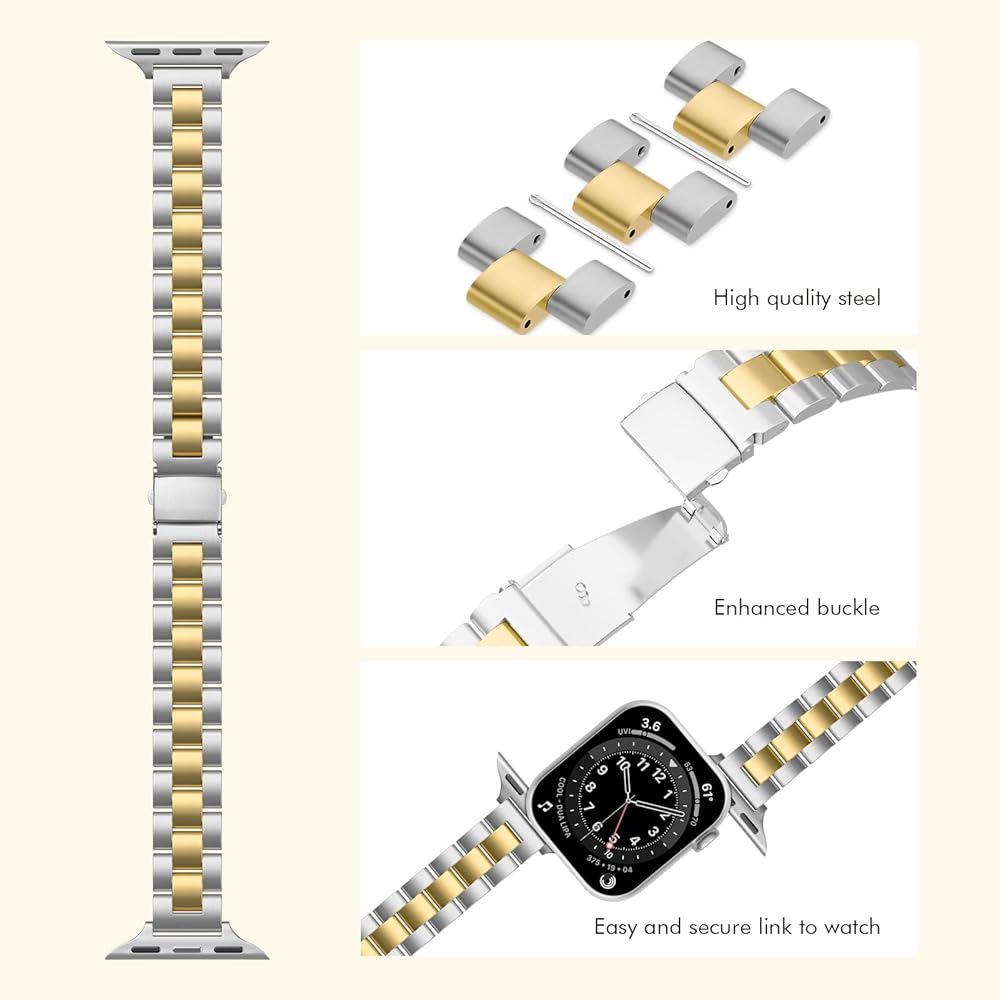 【طول قابل للتعديل】 سوار Burloreme رفيع من الفولاذ المقاوم للصدأ متوافق مع ساعة iWatch النسائية يناسب معصم 5.0-8.6 بوصة (130 مم - 220 مم). يمكن تقصير نطاق استبدال iWatch أو تمديده باستخدام أداة إزالة الارتباط المرفقة. يرجى الاطلاع على دليل الفيديو والتعليمات الخاص بنا.