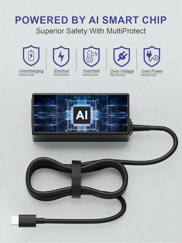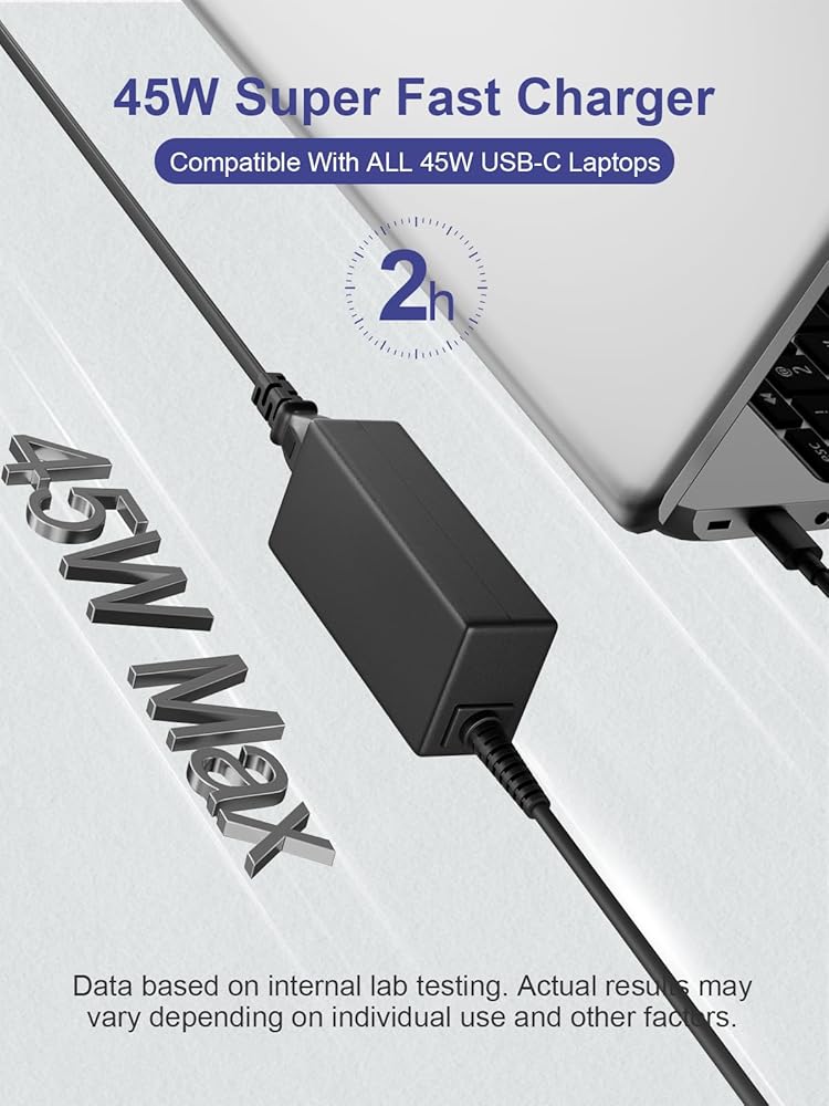 【مواصفات الطاقة 】 الإدخال: التيار المتناوب 100-240 فولت ؛ الإخراج: 5V⎓3A، 9V⎓3A، 15V⎓3A، 20V⎓2.25A؛ الطاقة: 45 واط (كحد أقصى)؛ حجم الموصل: USB-C / Type-C، شاحن Chromebook سريع بقدرة 45 وات USB-C/ Type-C