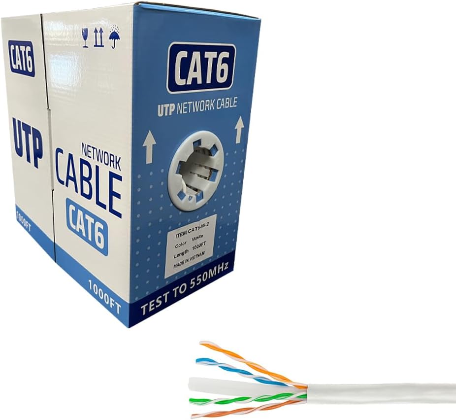 1000 ft AENS Cat6 Network Cable - CCA, 23AWG, 4 Pair, Unshielded Twisted Pair (UTP), 550MHz, Solid Bulk Ethernet CableExpand your network with the AENS Cat6 Network Cable, designed for superior connectivity over extended distances. This 1000-foot bulk cable features 23 AWG solid copper-clad aluminum (CCA) wires configured in 4 pairs of unshielded twisted pairs (UTP), making it an ideal solution for applications requiring high-speed data transmission. With a bandwidth capacity of up to 550MHz, it supports fast data transfer rates suitable for networking, video, voice, and data applications. Its unshielded design helps in reducing costs while still maintaining effective performance for day-to-day operations. Whether upgrading your home network or installing a new business network, this cable offers both quality and affordability.