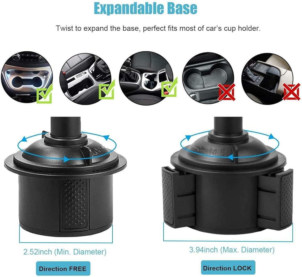 Universal adaptability: Universal cup phone holder for car suits most smartphones between 1.75 in and 4.3in wide, such as iPhone 8/8 Plus / x / 7/7 Plus / 6S / 6S Plus / 6/6 Plus / 5S / 5 , Samsung Note 8 / Galaxy S8 + / S8 / S7 / S6 /, Google Nexus 5X, Nokia Lumia Series, Motorola Moto G plus (5th generation), Huawei smartphone and more.