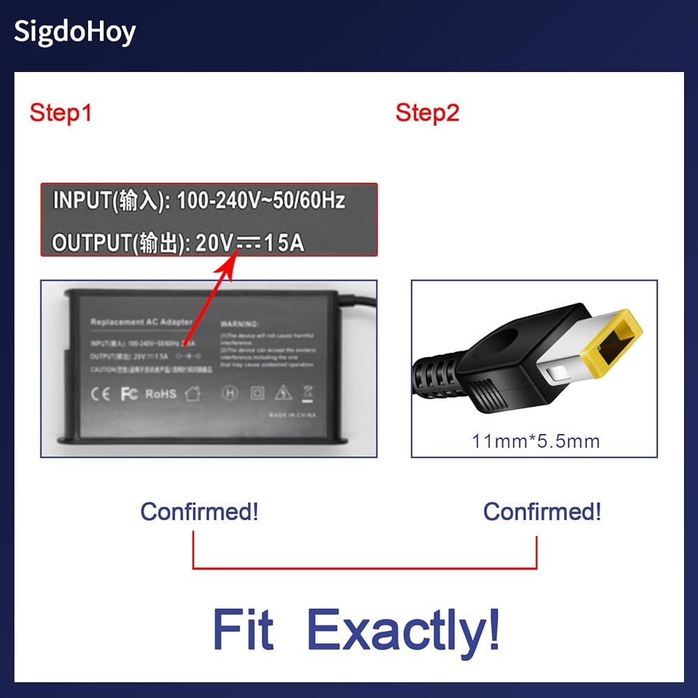 - الإخراج: 20 فولت 15 أمبير 300 واط؛ الإدخال: 100-240 فولت، 50-60 هرتز (متوافق أيضًا مع أجهزة الكمبيوتر المحمولة لينوفو 230 وات 170 وات)