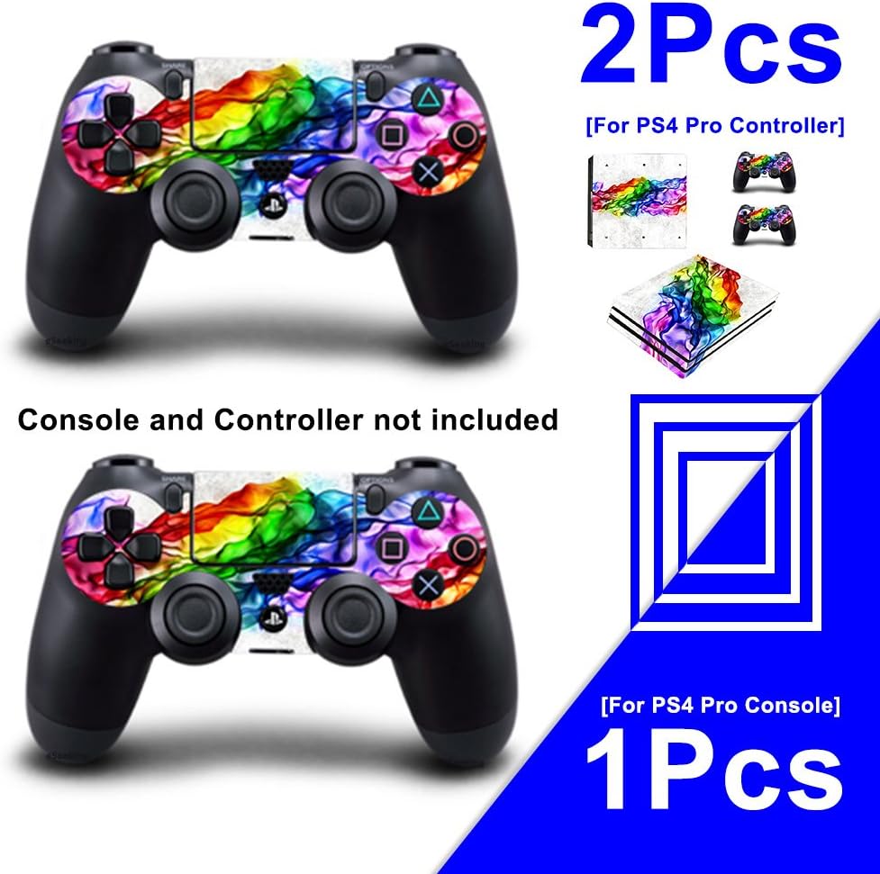 ملصق جلدي من الفينيل الواقي لكامل الجسم لوحدة التحكم PS4 Pro وقطعتين من ملصقات جلود وحدة التحكم PS4 Pro الأنيقة بألوان قوس قزح