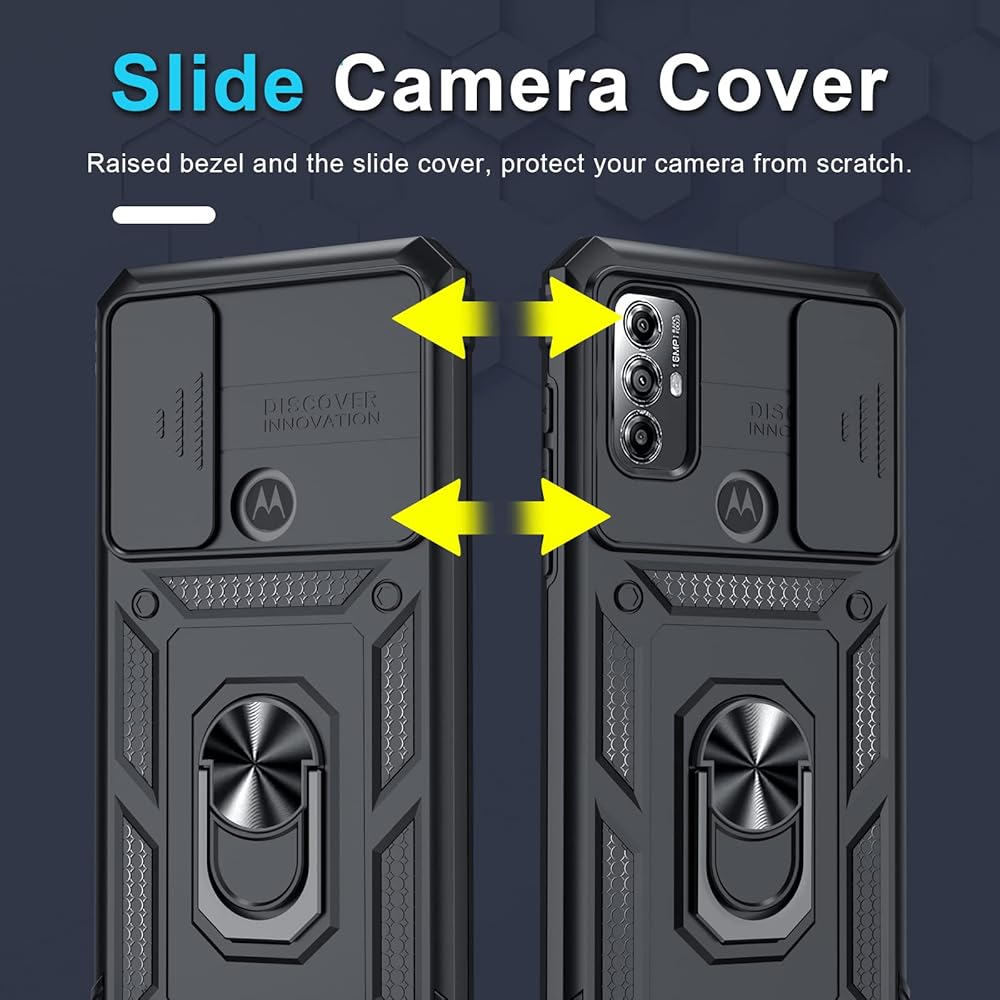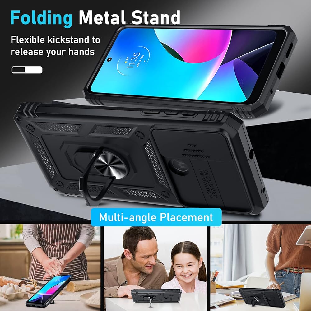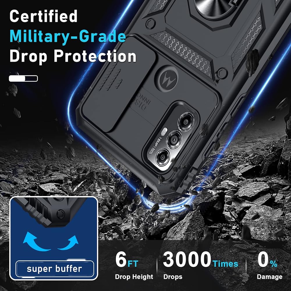 Janmitta متوافق مع Moto G Play 2023 ، G Power 2022/G علبة نقية مدمجة في غطاء العدسة الكاميرا الشريحة+حامي الشاشة+حامل الحلقة ، غطاء هاتف كامل للخدمة ، أسود ، أسود