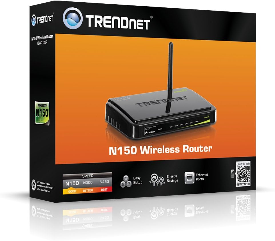 TEW-712BR N150 Wireless RouterTRENDnet's Wireless N150 Router, model TEW-712BR, provides reliable 150Mbps wireless n speed and coverage to share files, play games, and surf the Internet.
