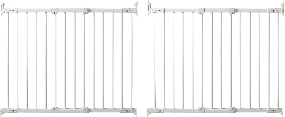 Safety always comes first with infants, especially around stairs. Blocking access to the top of the stairs, the 2-pack KidCo Angle Mount Safeway Stair Top Baby Gate ensures your child can't reach the stairs by themselves, stopping accidents. Securing firmly to your wall with the mounting hardware, these baby gates provide a strong block that your child cannot dislodge or open on their own. Featuring a unique angle-mount hitch-and-latch design, the gates mount at an angle for stairs, walls, and balusters that don't line up. The safety gates easily open with one hand using the easy-release lever, ideal for adults carrying boxes or children. If the gate's in the way even when open, the quick-release hardware lets you conveniently remove the entire gate. Constructed from heavy-duty steel, the stair gates feature a non-toxic powder coat that resists corrosion and damage while remaining safe. Designed specifically for stairs, the gates also block hallways, divide rooms, and secure high-traffic corridors, helping keep infants and even smaller pets away from dangerous thoroughfares. With a quantity of 2 gates included, you can safeguard multiple areas of your home with ease. Blocking off dangerous areas to ensure your infant's safety, the durable and convenient 2 packs of Angle Mount Safeway Stair Top Baby Gate by KidCo help baby-proof your stairways and high-traffic halls.