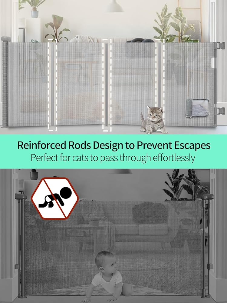 【تصميم مريح لباب القطط】 مثالي للعائلات التي لديها أطفال وحيوانات أليفة، حيث تسمح البوابة القابلة للسحب لقطتك بالتجول بحرية مع إبقاء الأطفال الصغار والكلاب خارج المناطق المحظورة.