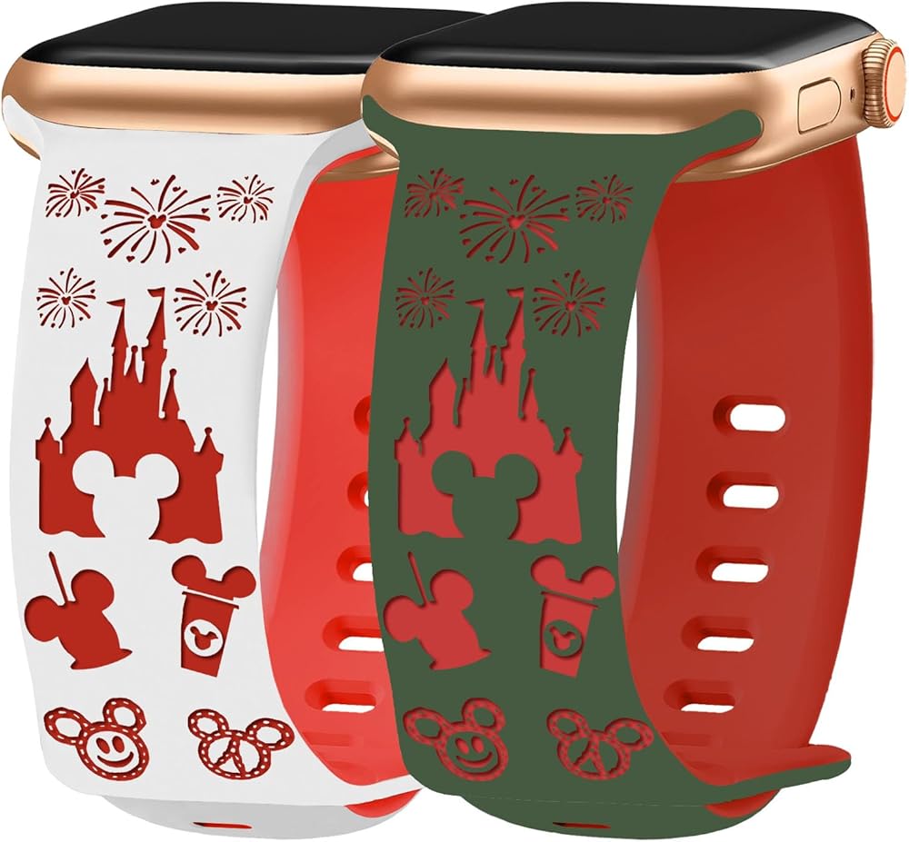 【أحدث تصميم بنمط ثنائي اللون】تتميز أحزمة ساعة التفاح الكرتونية للنساء بنمط ثنائي اللون ساحر مع قلاع منقوشة وتصميمات ألعاب نارية. لا يمكنك مقاومة ارتداء سوار المعصم المنقوش الرائع هذا ليتوافق مع مزاجك وملابسك، والذي من المؤكد أنه سيحظى بالكثير من الإطراء.