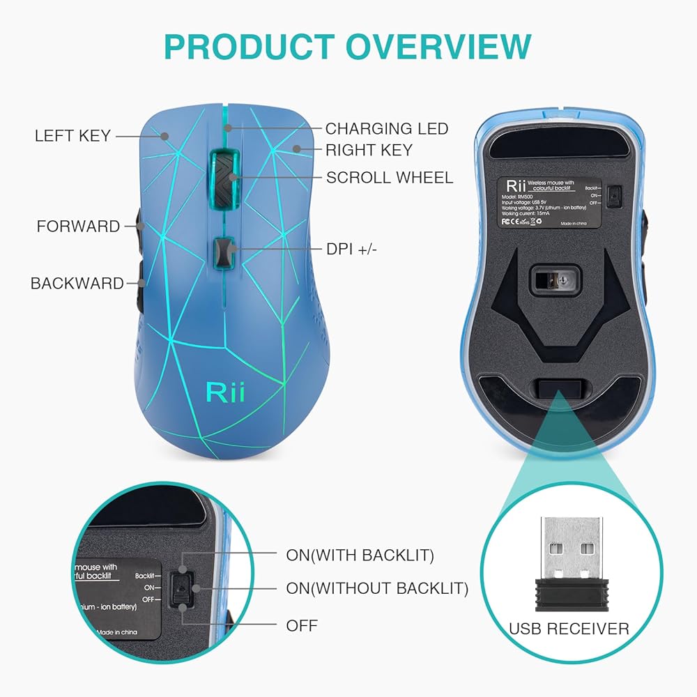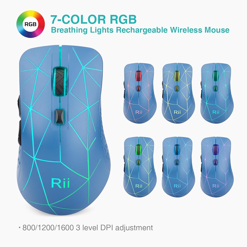 【RGB Backlight】The wireless mouse comes with a colorful auto-breathing LED backlight that creating a cool and fancy atmosphere for work and game.(Note: the backlight can not be set in one specific color.)