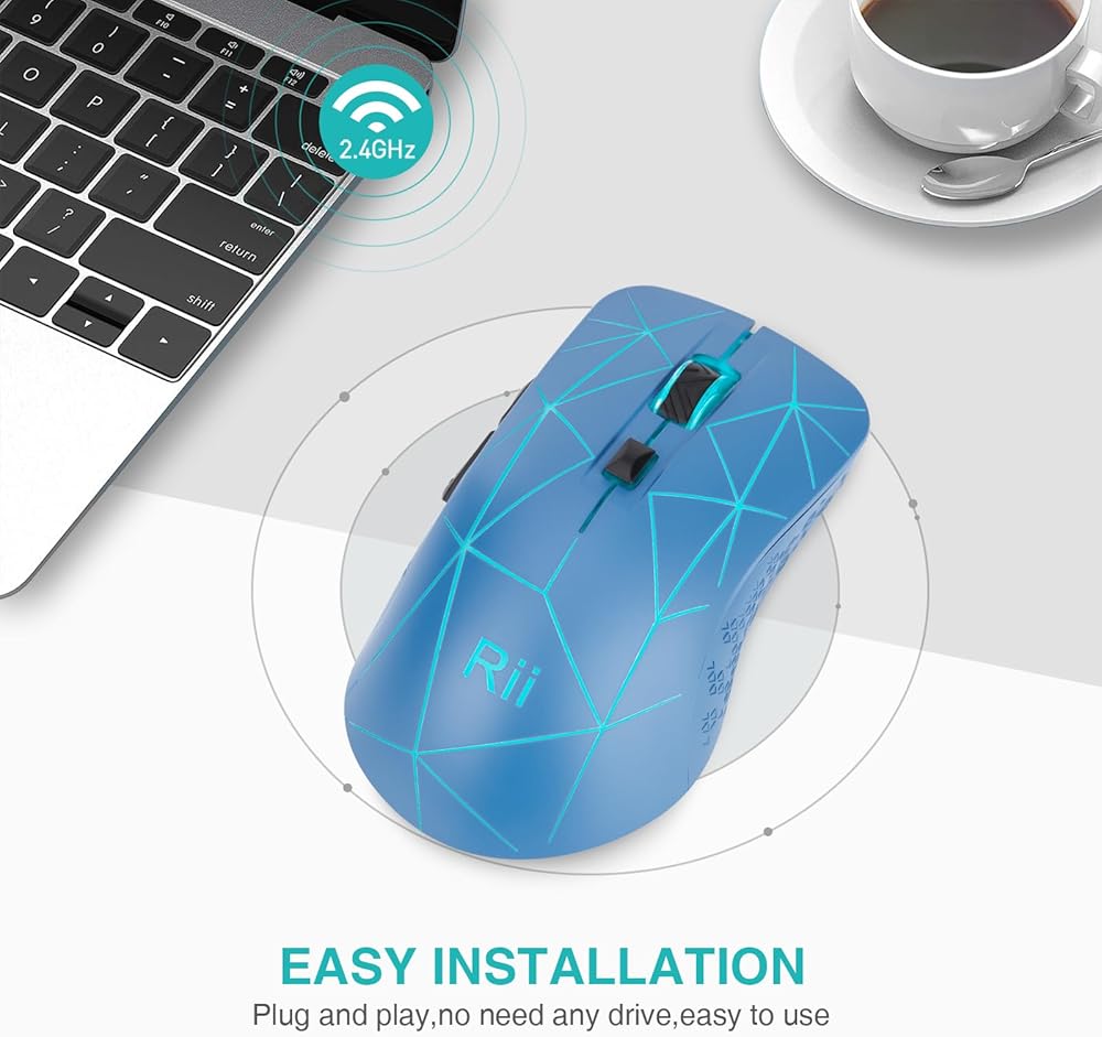 【Plug & Play 】The RGB mouse is plug and play. No need to install any drivers. And the USB receiver is stored in the mouse so that it is not easy to lose.