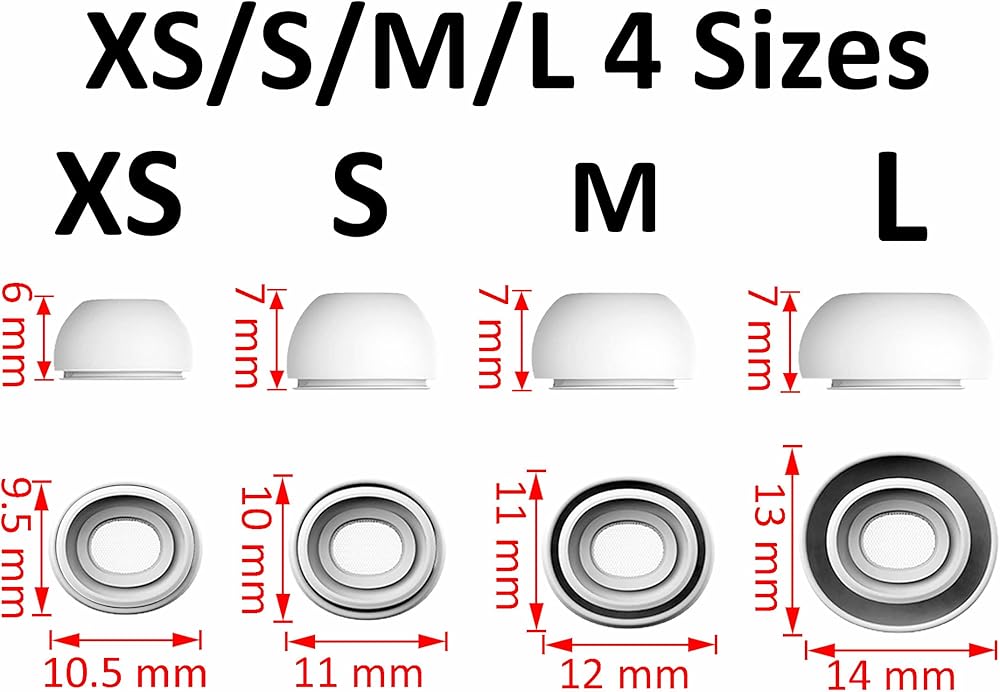 【 Ear Tips 】 4 pairs eartips made of silicone material, comfortable and ensures long-lasting comfort to your ears, extral small, small, medium and large 4 size (1 pairs per size).