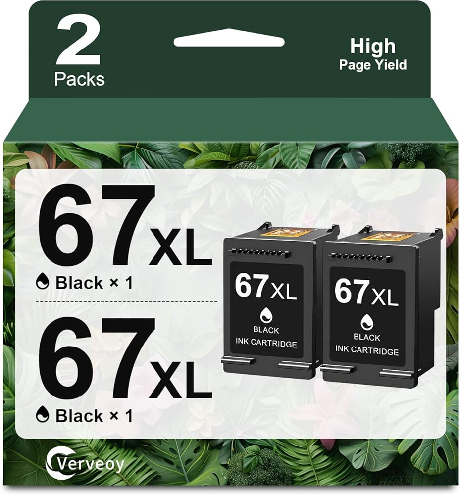 • محتوى العبوة: خراطيش حبر Verveoy المعاد تصنيعها متوافقة مع خرطوشة الحبر الأسود HP 67xl مع شريحة محدثة، عبوتان من خرطوشة الحبر الأسود 67XL 67 XL المتوافقة مع خرطوشة الحبر الأسود HP 67 (عبوتان)