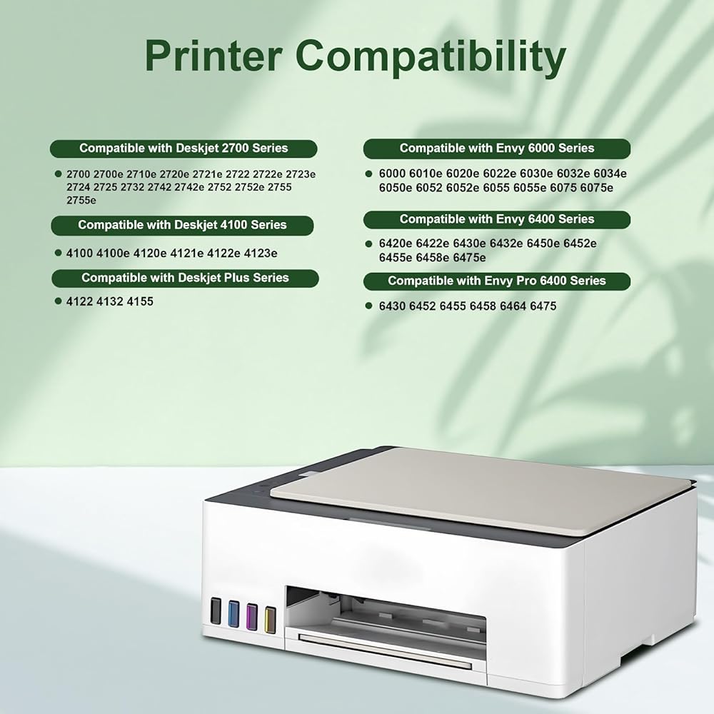 • متوافق مع حبر HP DeskJet 4100: 4100، 4100e، 4120e، 4121e، 4122e، 4123e، 4130e، 4132e، 4152e، 4155، 4155e، 4158e، متوافق مع DeskJet Plus 4122، 4132، 4155