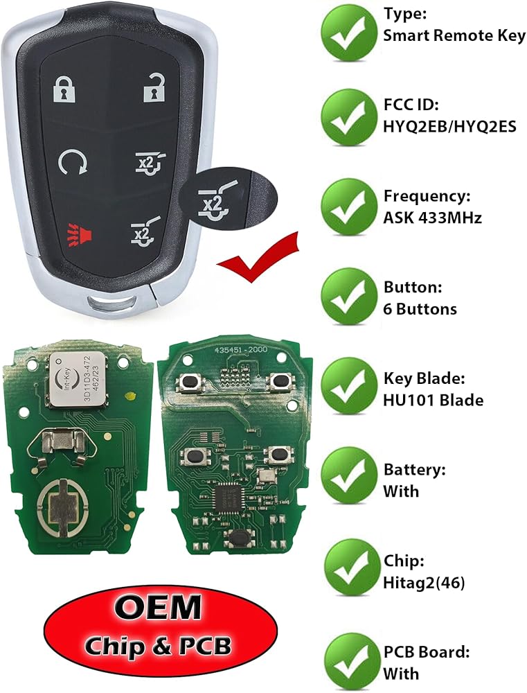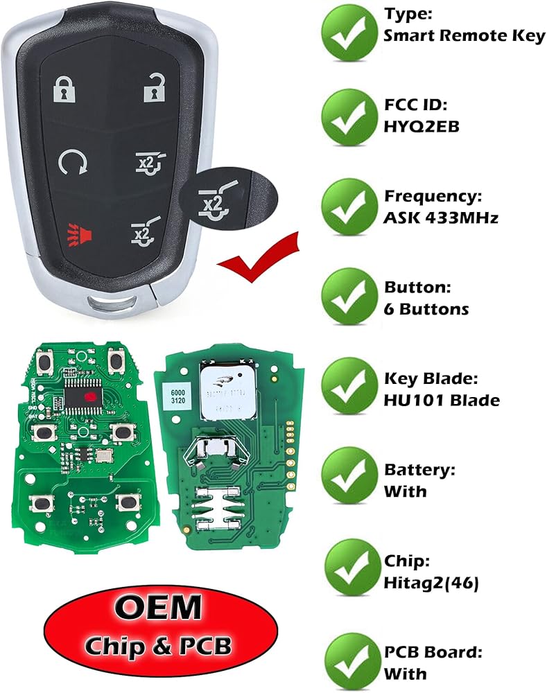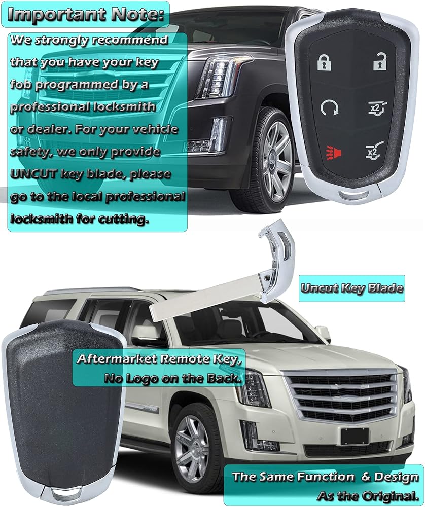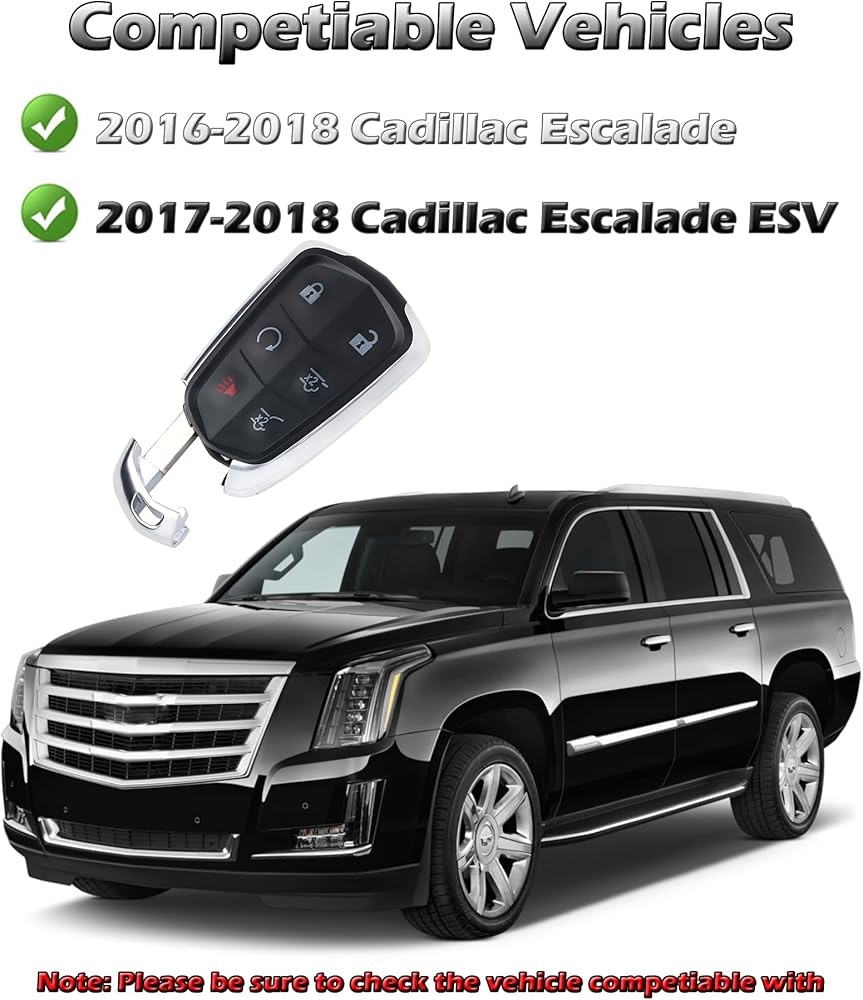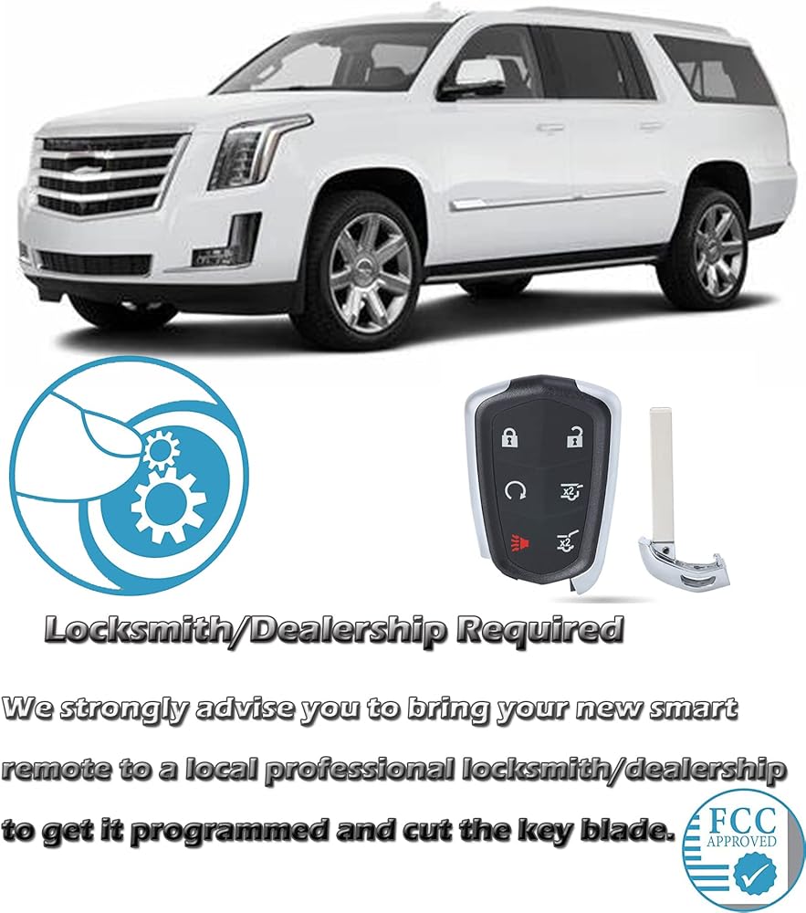مفتاح بعيد للدخول بدون مفتاح فوب، Alliskeys 6 أزرار مفتاح السيارة الذكي القرب مناسب لكاديلاك إسكاليد/إسكاليد ESV HYQ2EB 433 ميجاهرتز